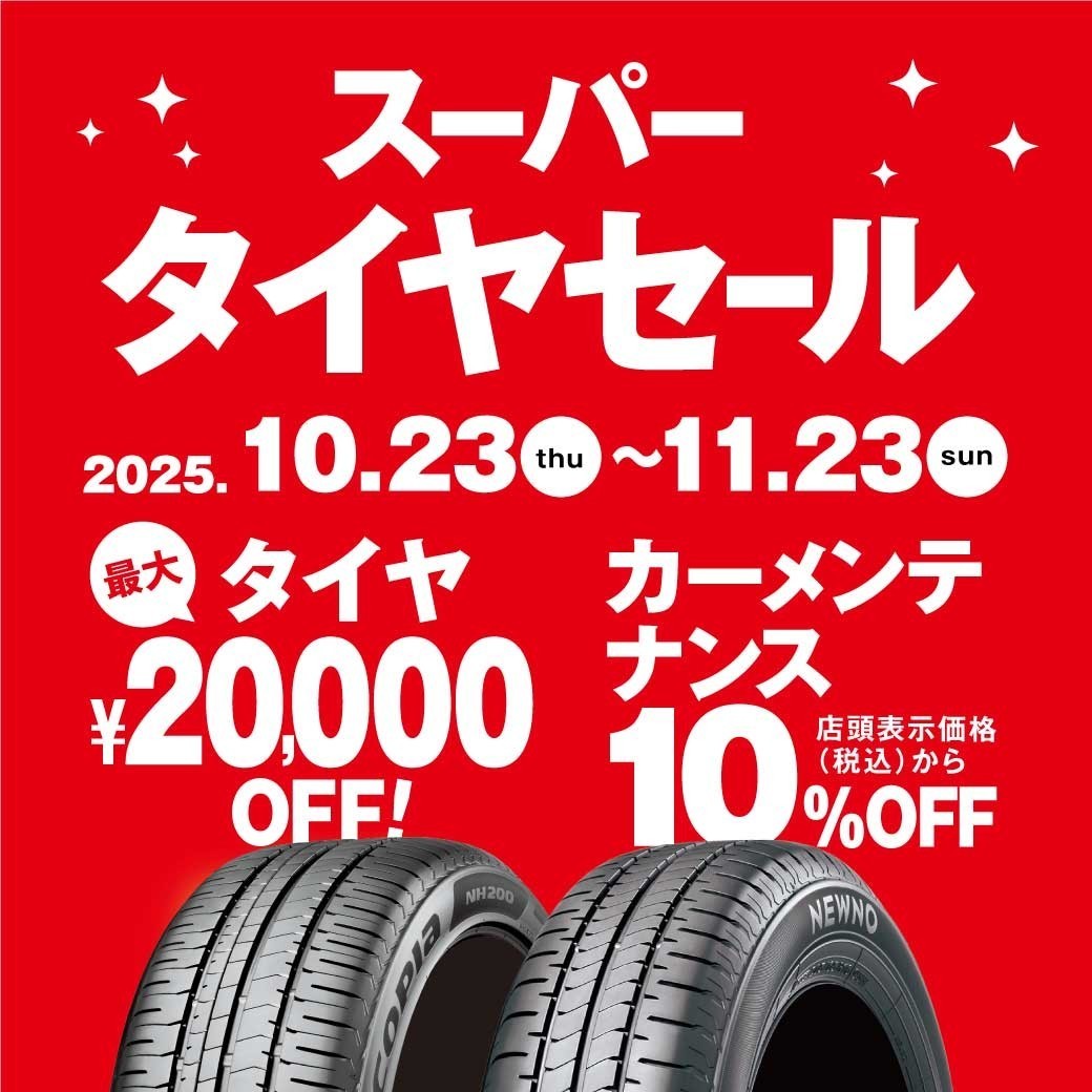 お買い得タイヤが満載!スーパータイヤセール開催中♪アプリクーポンでブリヂストンタイヤが最大2万円引き!!