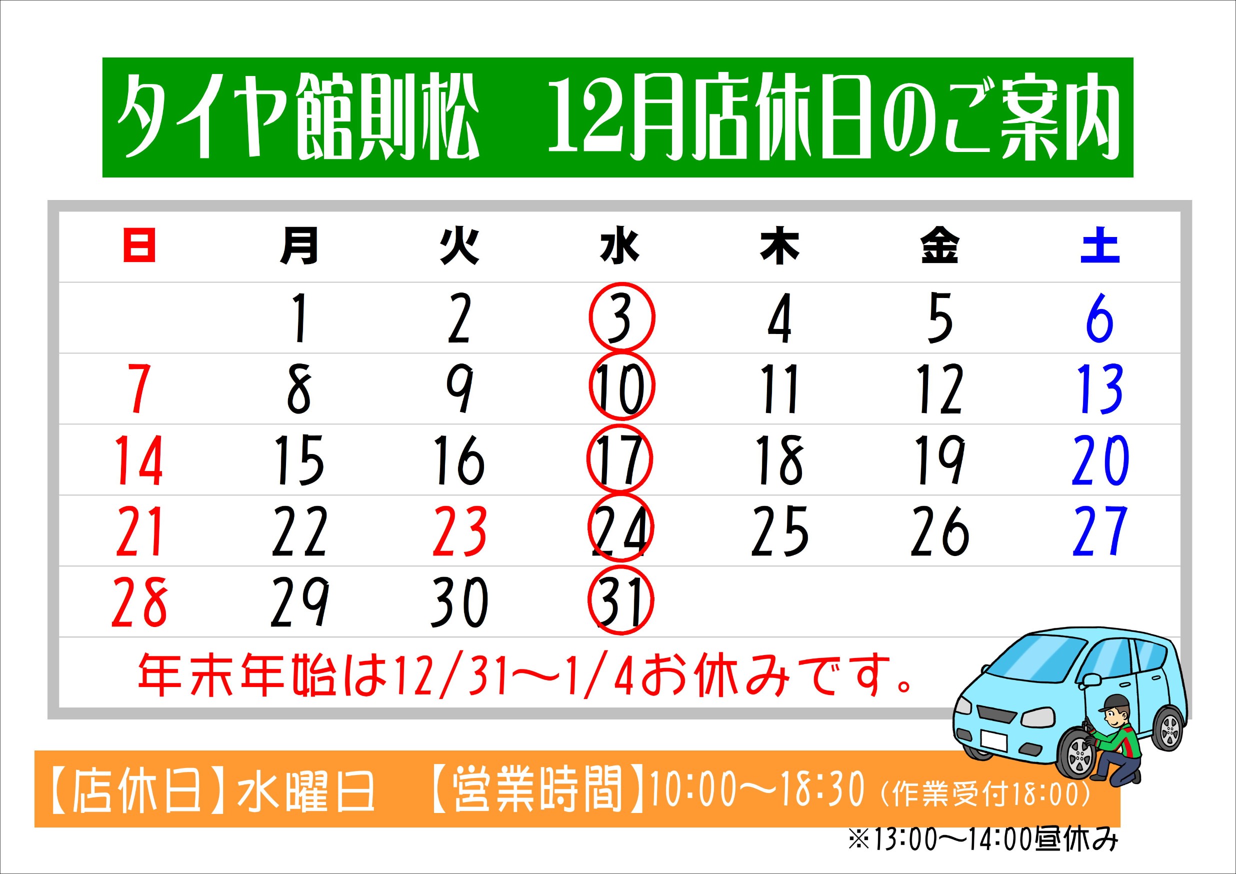 水曜日は 店休日ですm(__)m