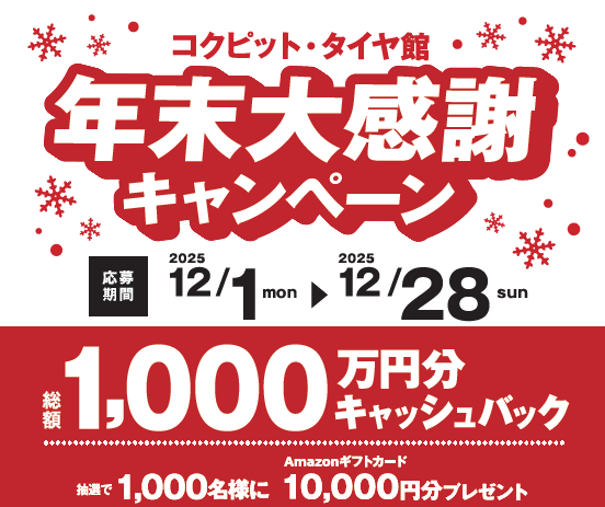 総額1,000万円分キャッシュバック!年末大感謝キャンペーンが12/1~開催!!