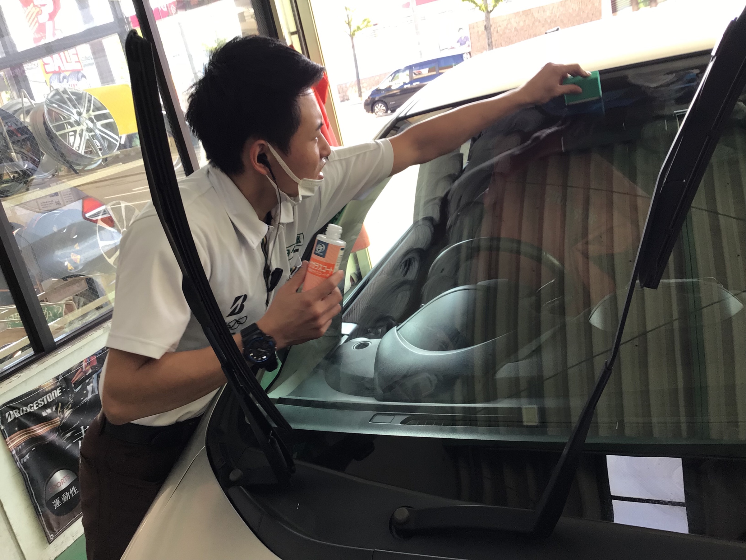 専用のスポンジを使用してフロントガラスにコーティング剤を塗っていきます!