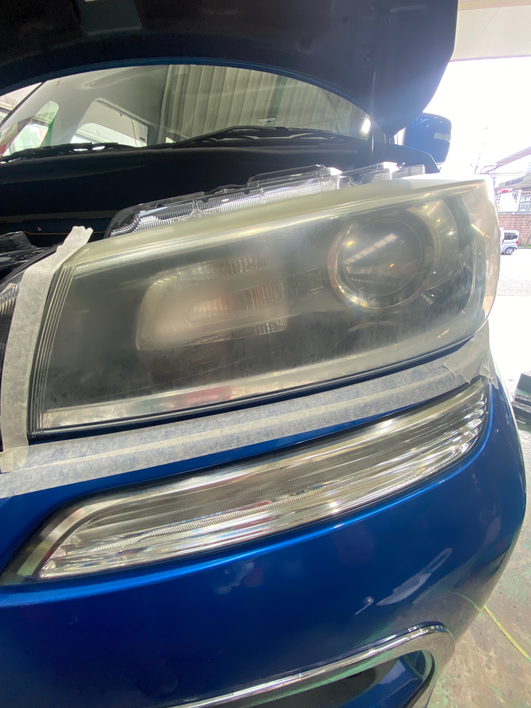 今回は当店で車検の為、車検前のメンテナンスにてヘッドライトレンズを磨いてコーティングします!