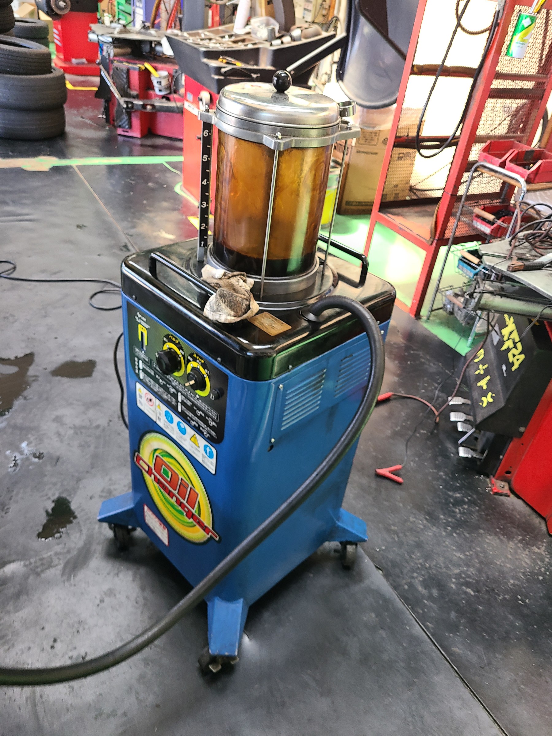 当店では、上抜き用のオイルチェンジャーを使用してオイルを交換しています!