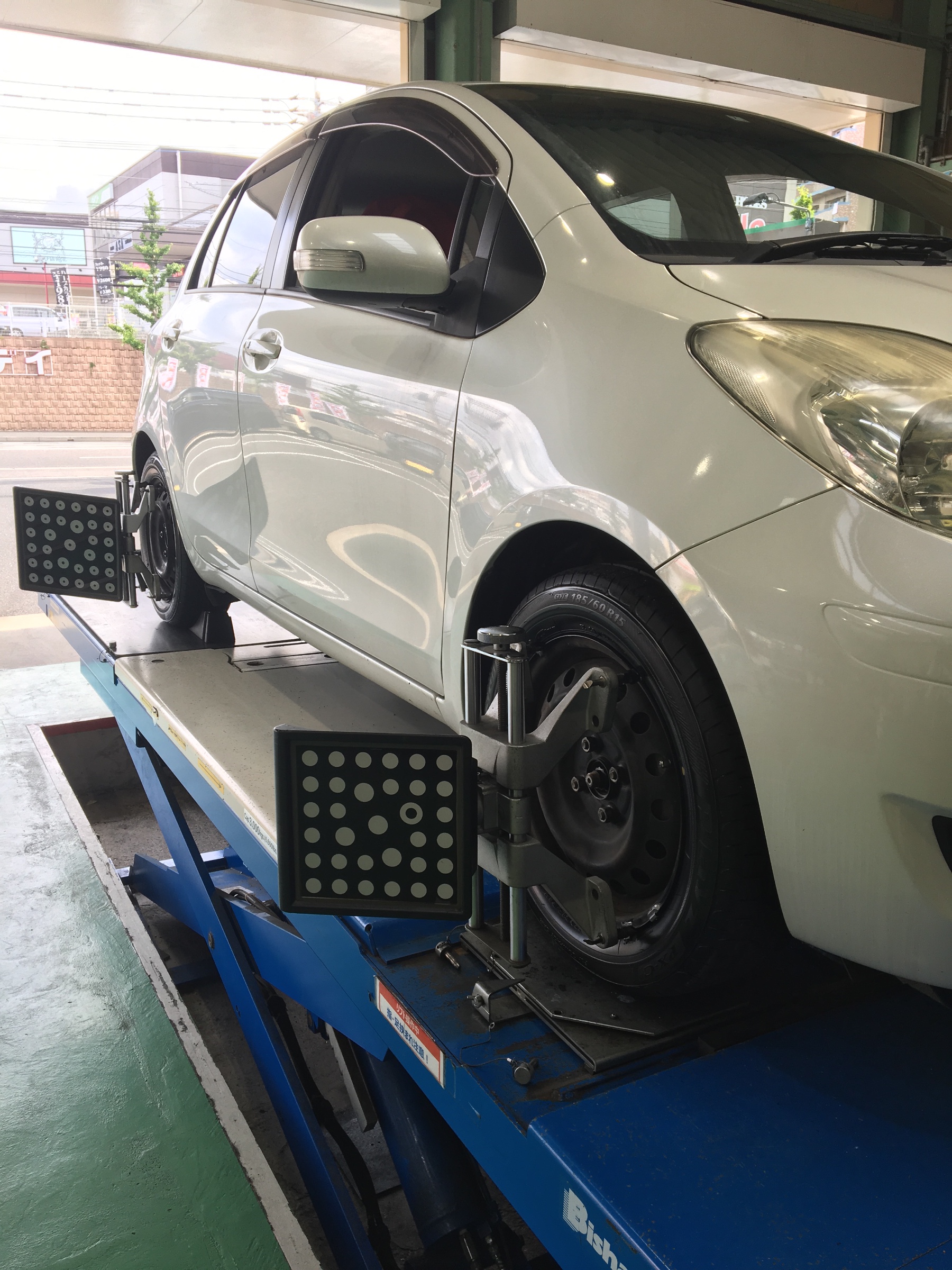 こんにちは!今回はヴィッツのお客様でタイヤ交換と一緒にアライメントの調整作業をさせていただきました!