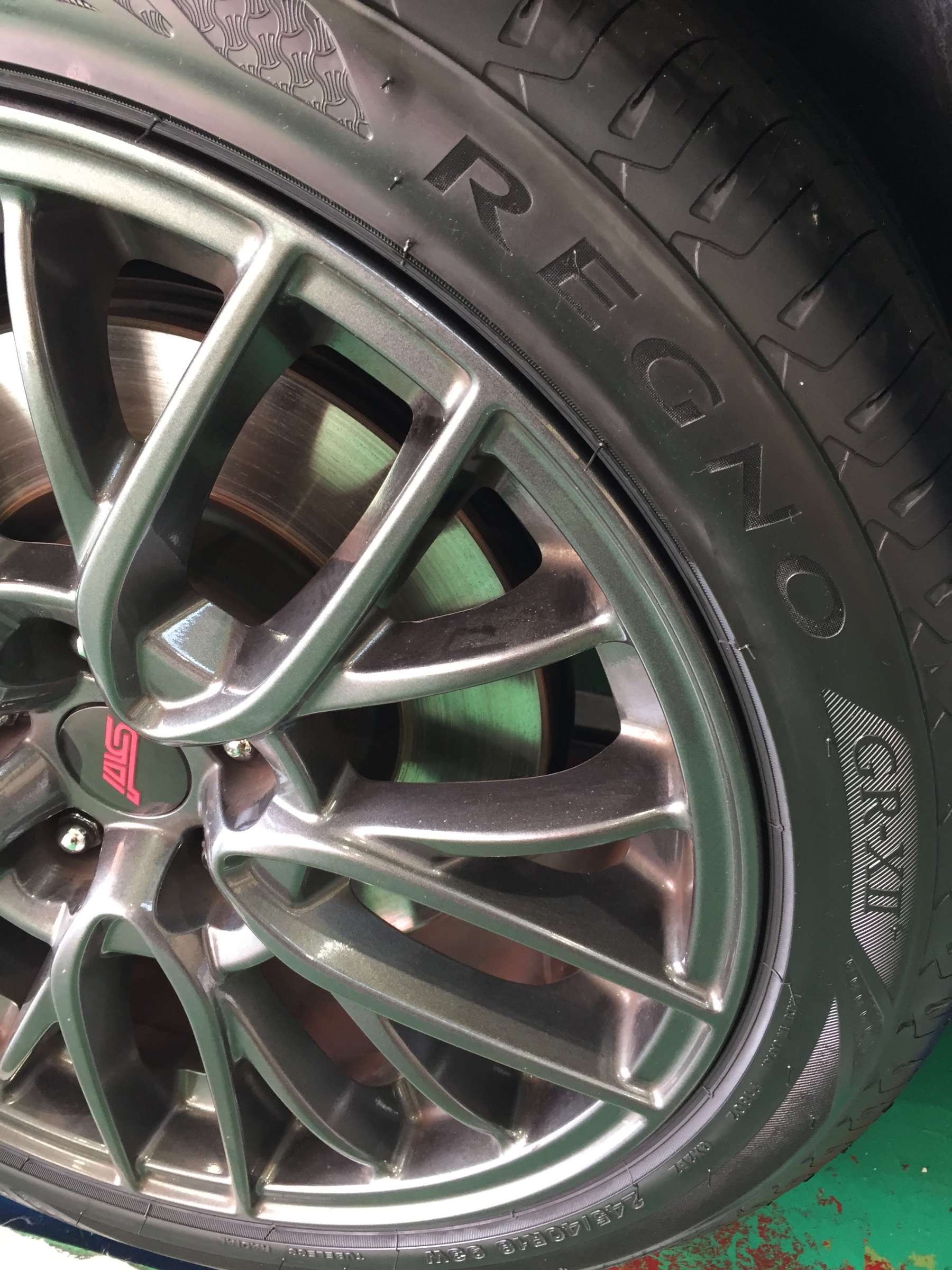 インプレッサにお乗りの方は走りを重視してポテンザ を選ばれる方が多いのですが音と乗り心地が気になるということでレグノをオススメして装着させていただきました!