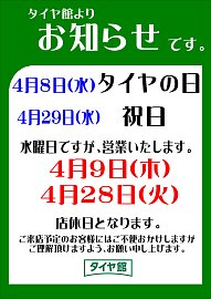 4/28(火)店休日 4/29(水)営業です。