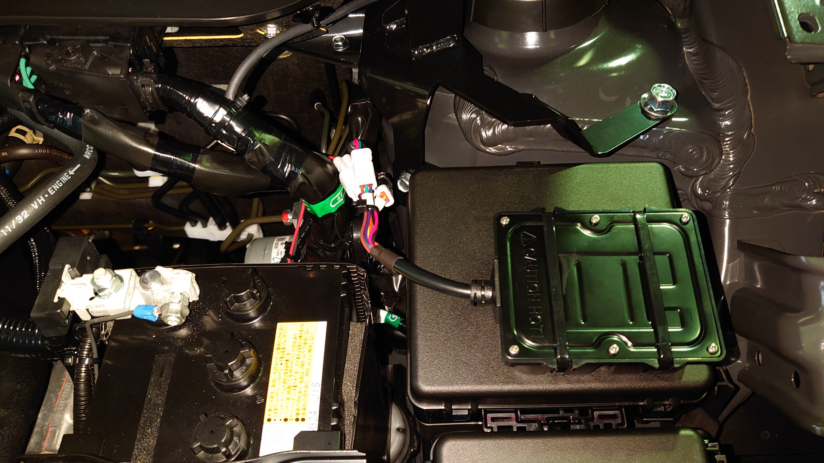 ここから配線が各車高調に向かって行くのですが取り付いた画像がこちら