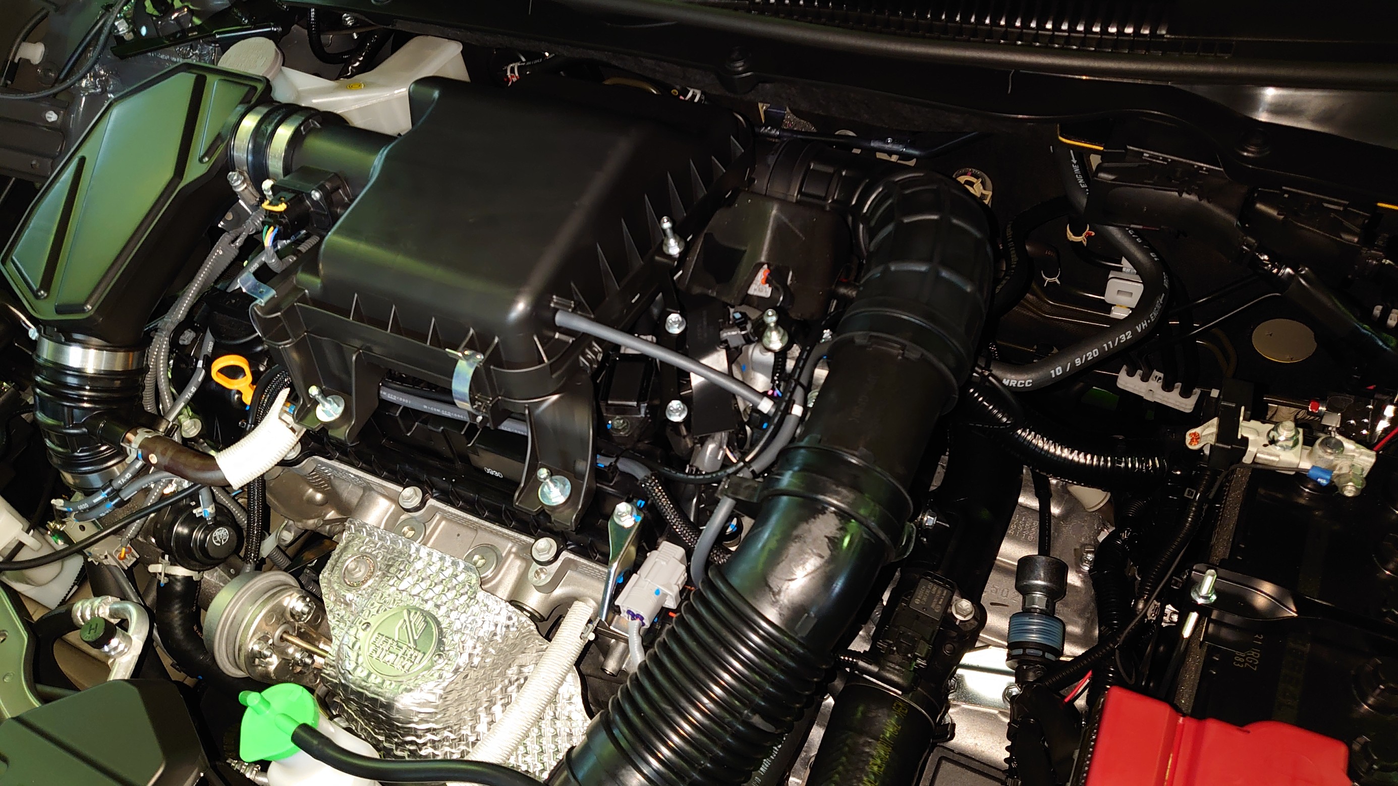 ちょっとだけ見えてます。エンジンは揺れも凄いので純正配線と同じ通し方、長さにすれば負荷も少ないですから安心です