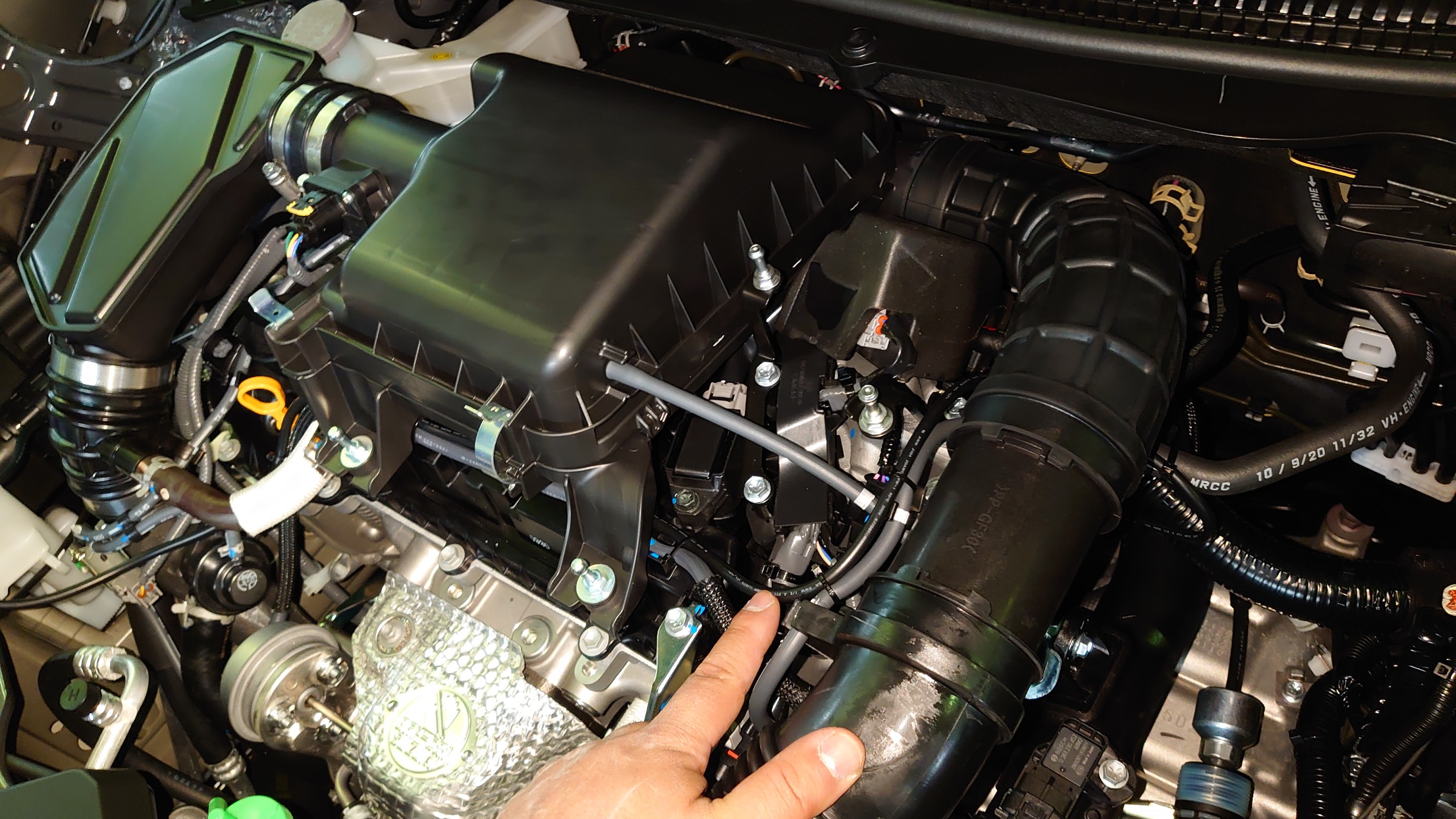 エアクリーナーの下を通します。