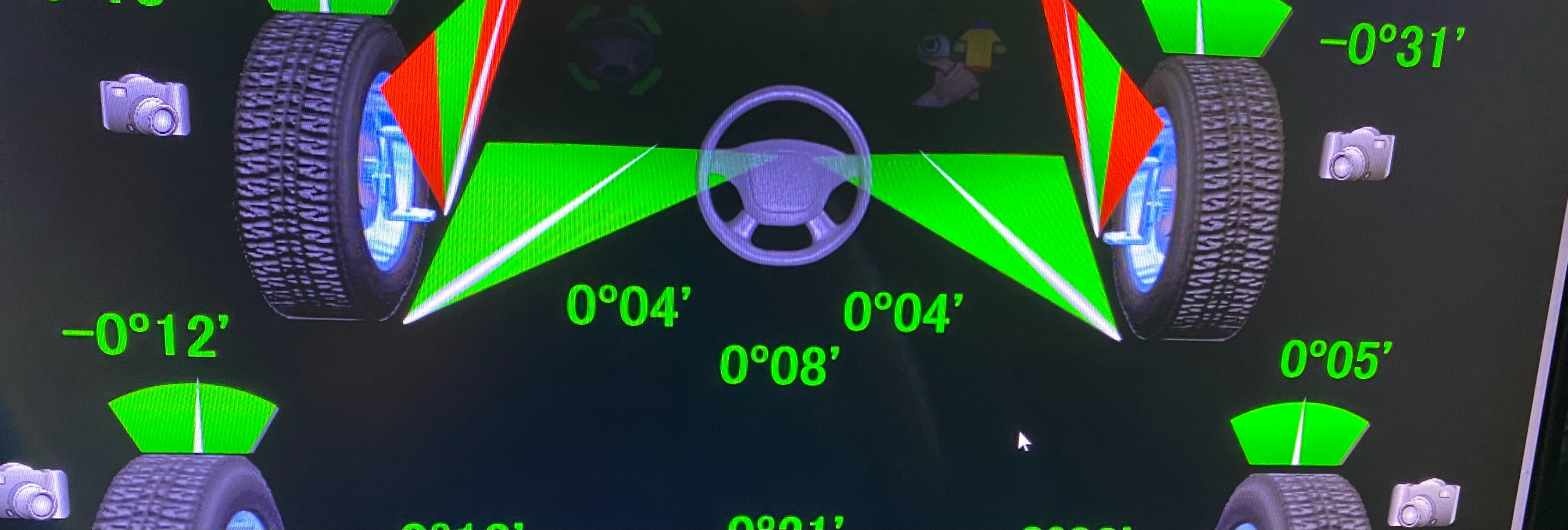 これだと真っ直ぐ走ることもできない状態になってしまいます。こういうのを真っ直ぐに直すのがアライメント作業です!
