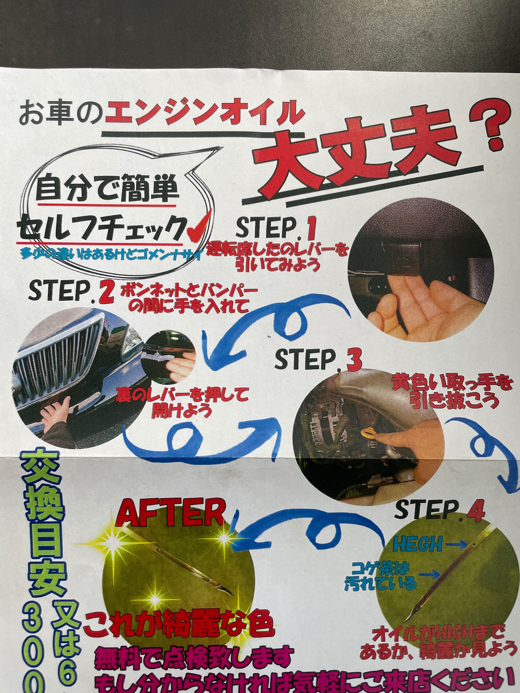ちなみにこちらはオイルの色味チェックの仕方になります!皆様このご時世ですのでメンテナンスをして車を長持ちさせましょう!