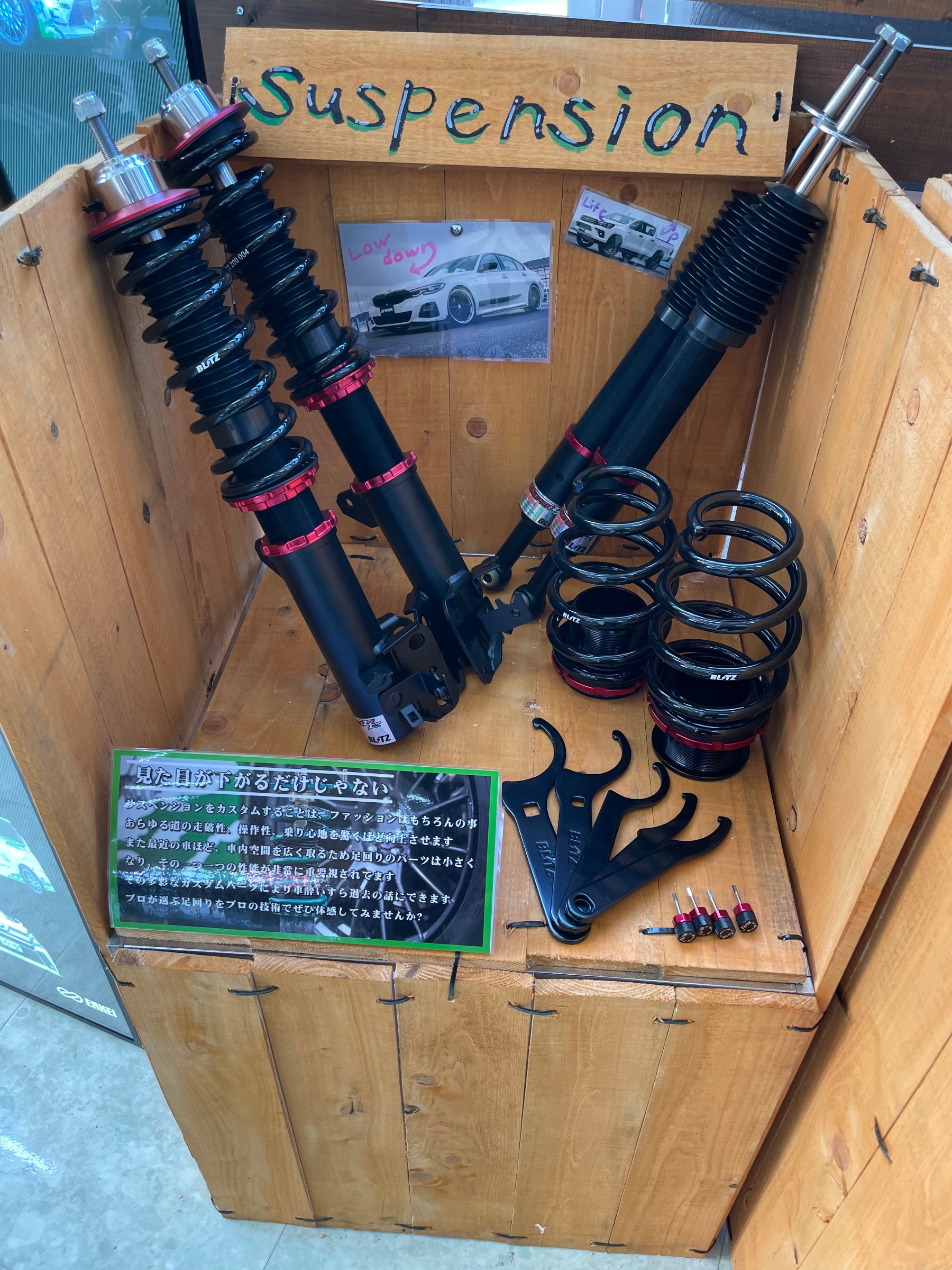 置いている物はTEINとBLITZになりますがその他HKS等など多数お取扱いありますのでなんなりとお声おかけください!