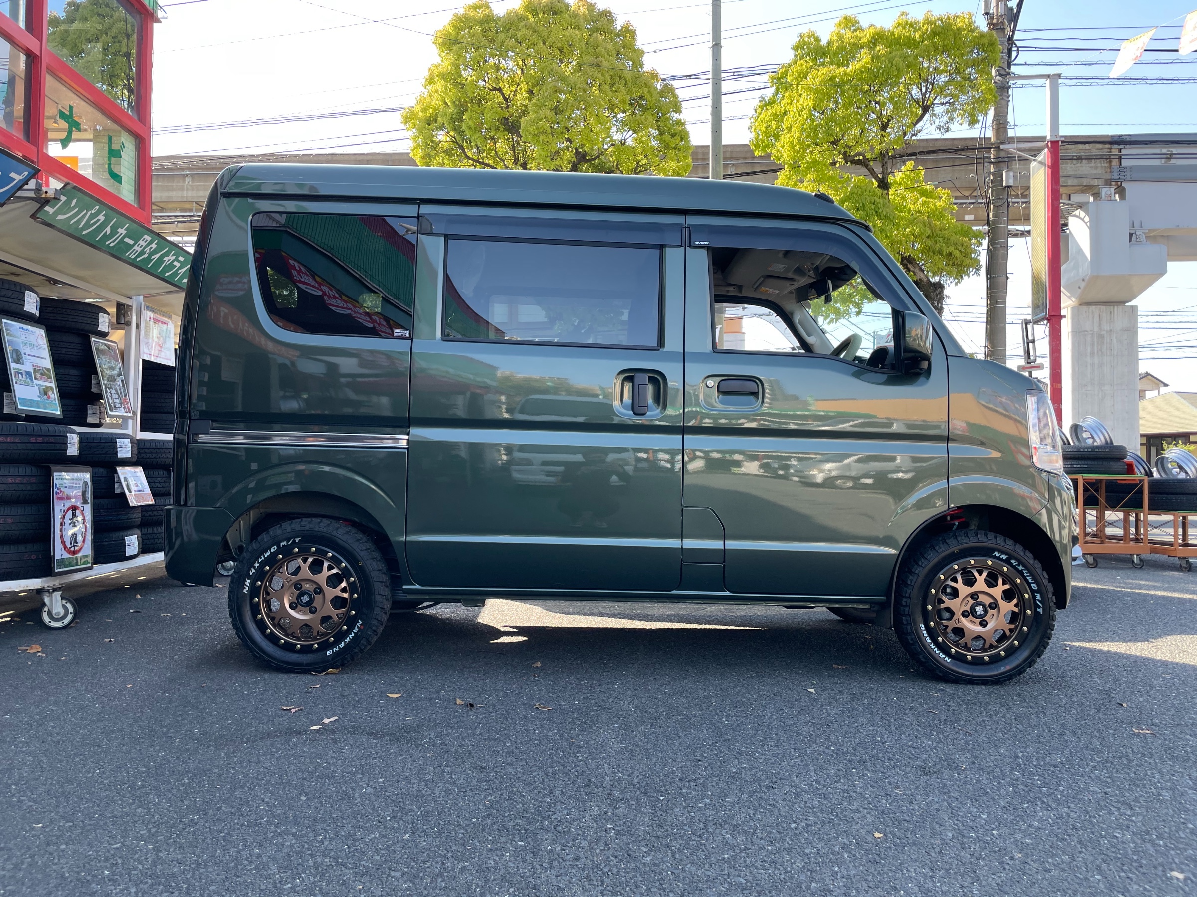 先日お客様からのご依頼でエブリィの車高を少し上げてタイヤホイールの装着を致しました。まずは純正をどーぞ。よく見る軽バンって感じですね(^ν^)