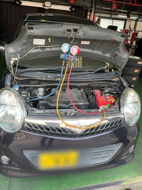 車両個体差はあるでしょうがやはり年数が経つとエアコンも壊れます。部品を変えないといけないほどの故障であれば修理しないといけませんが少し効きが悪いくらいであれば当店でクーラーガスを補充などもできます!ちなみにこちらがクーラーガスの補充風景です。 こちらの車のオーナー様から帰り際にものすごく冷たい風が出るようになりました!っとお声をいただきました(*^o^*)