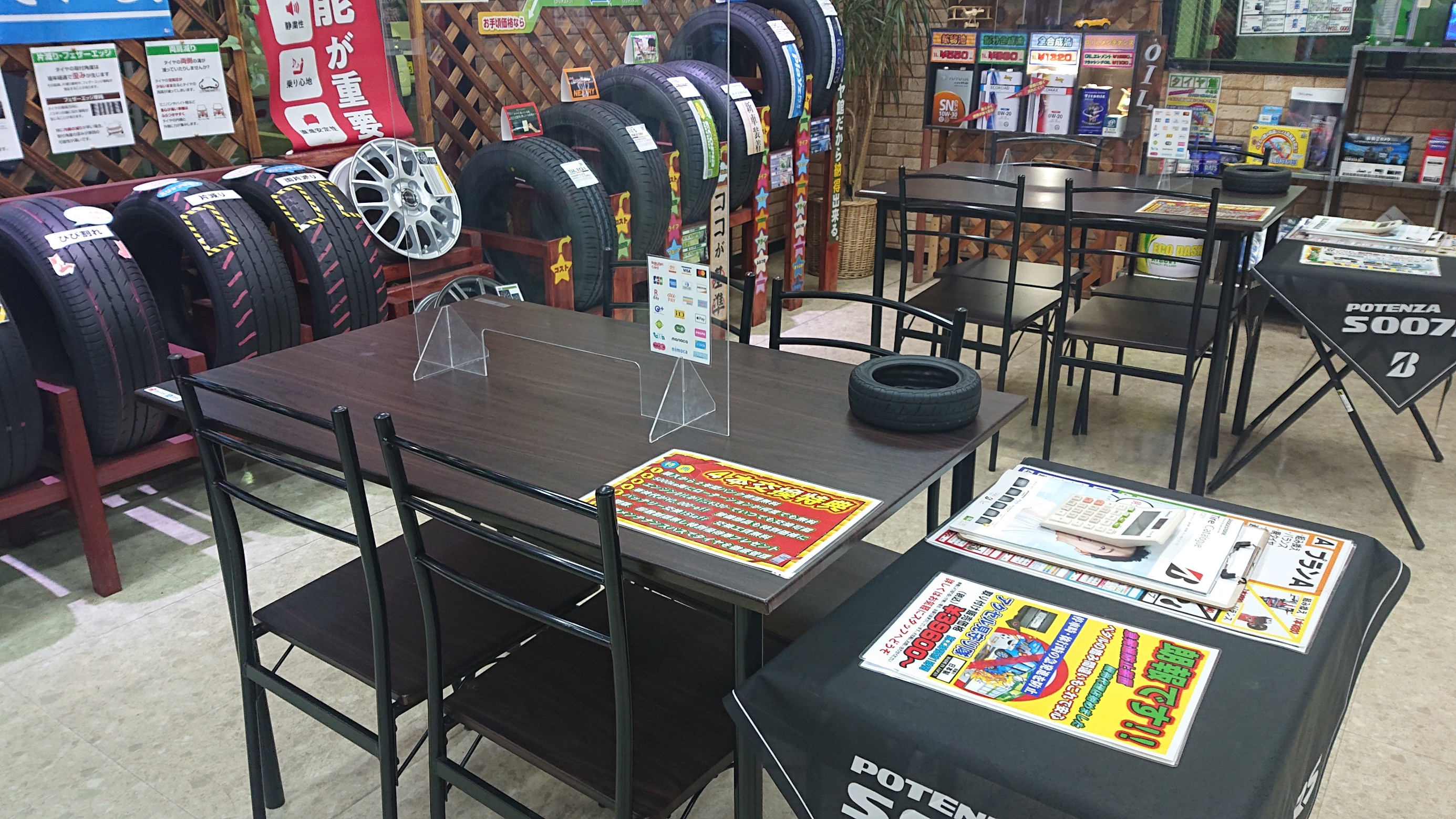 店頭入り口には接触を減らす足で踏むことで消毒出来る設備の設置や店内ご商談スペースには飛沫感染防止のアクリルボードを完備!