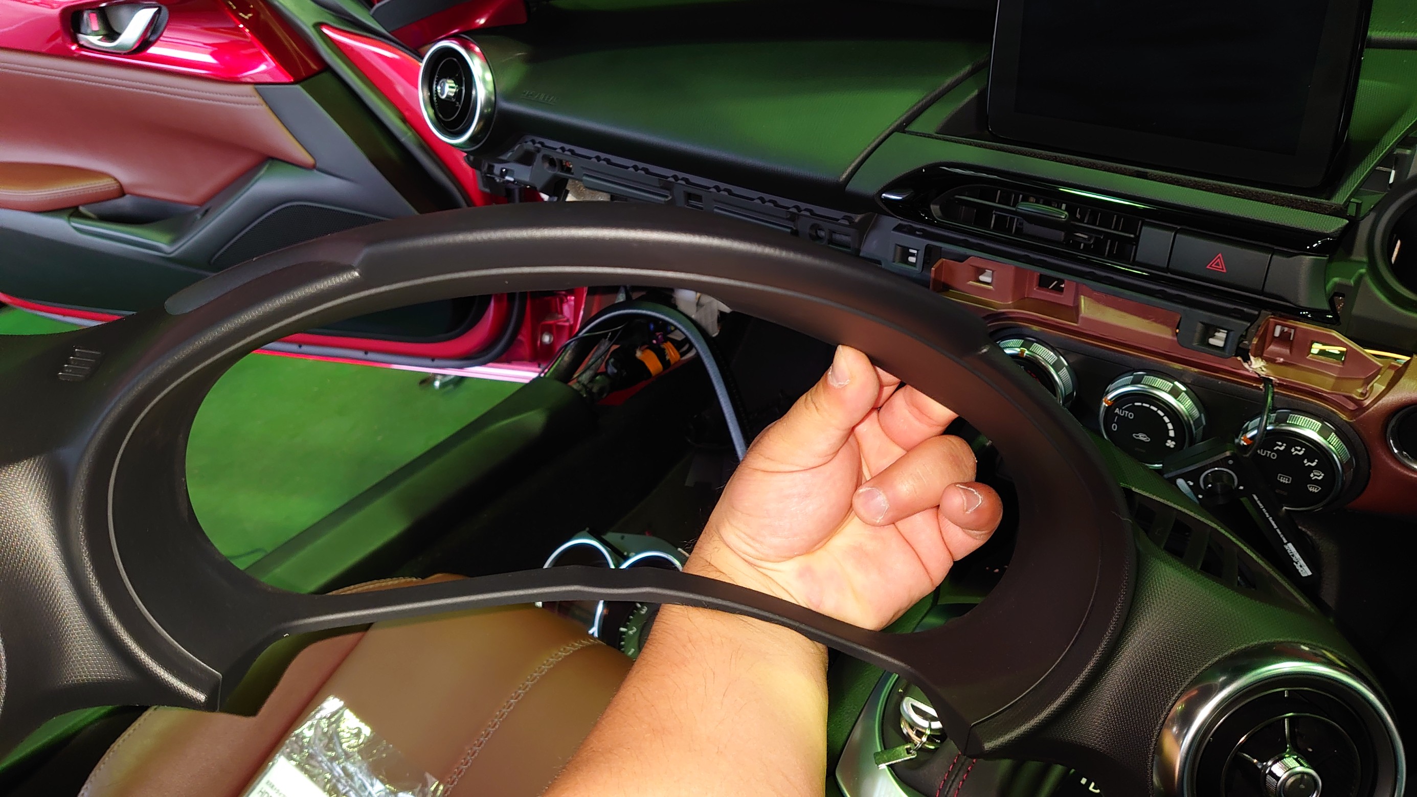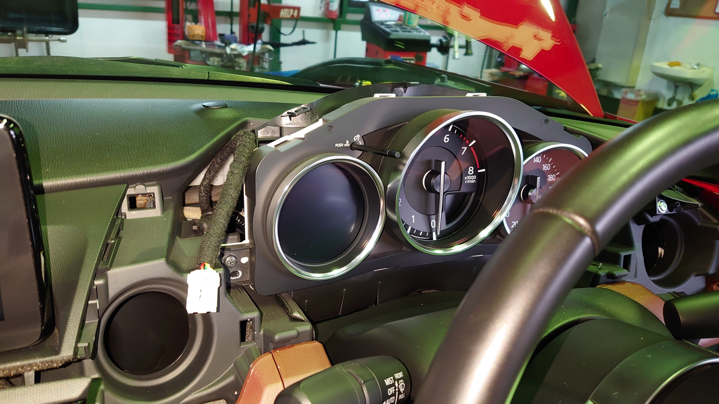 さてコントロールユニットをつけるんですがこればかりは千差万別の取り付け方法が必要で新型ロードスターはすみません、マヂで写真撮る余裕が無いほど手が塞がりながらの取り付けになった程大変でした、、