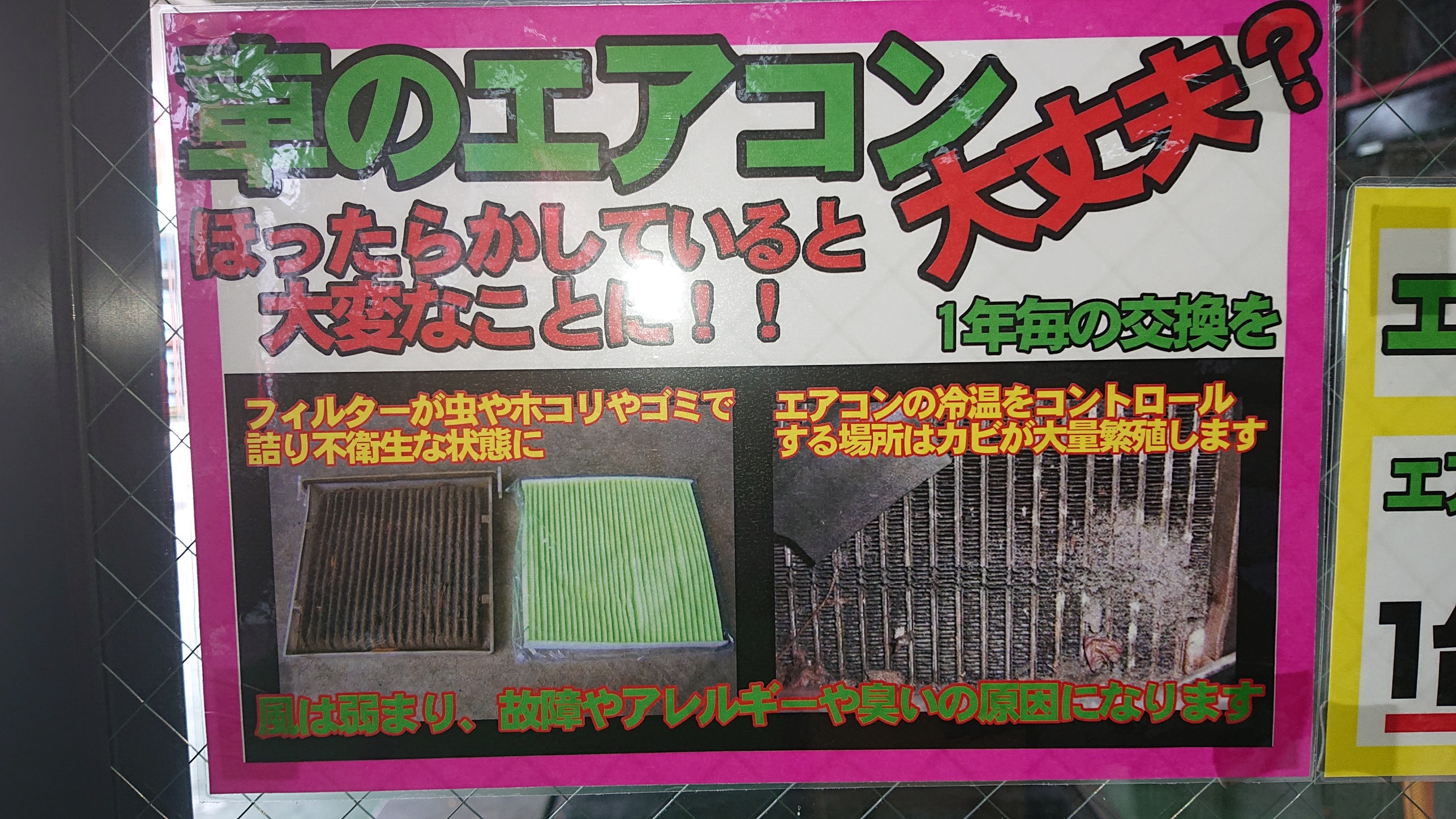 当店では匂いの原因であるエバポレータの洗浄や外気から流入した埃や木葉で汚れたエアコンフィルターの交換も受け付けております!