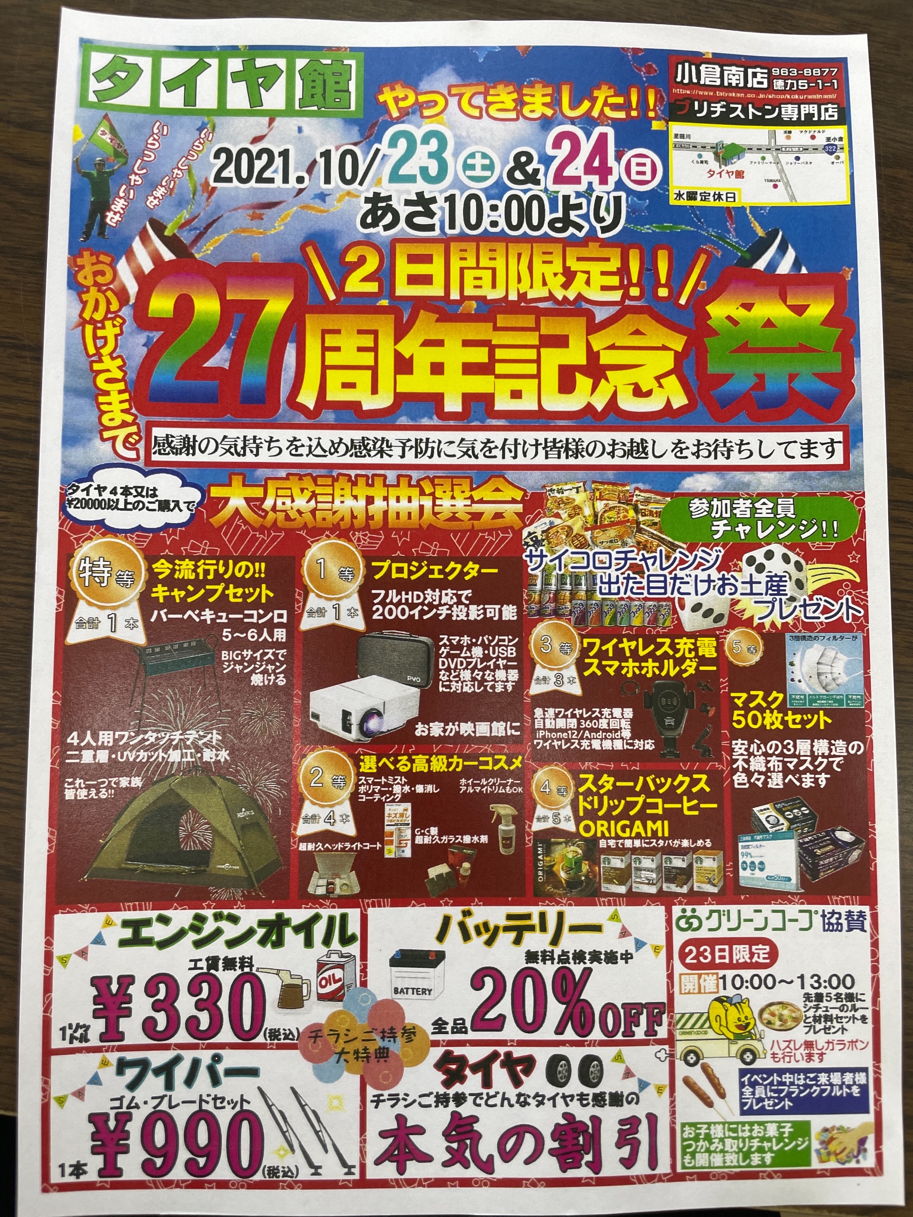 当店タイヤ館小倉南は27年目になります!地域の皆様や県外からのお客様からの支え合っての27年目だと思っております!ありがとうございます!