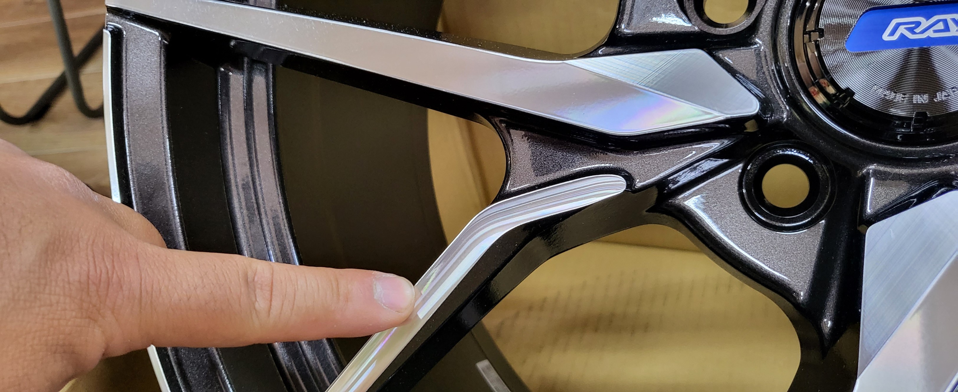 ホイールにはポリッシュと呼ばれるアルミの地肌を削り出したデザインが良くありますが