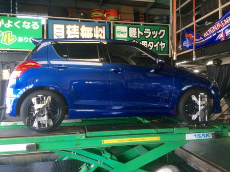 ホイール&アライメント ポスト 2015年7月26日 こんにちは(^^)今日はスイフトのホイール交換&アライメントをしました(^.^)ホイールはワークのワークエモーション11R(^^)メチャメチャ似合ってます(^^)アライメントもしっかりとってタイヤ長持ちです(^-^)ホイールお探しの方は是非当店へ(^^)見積もりだけでも大歓迎です(^-^) 担当:佐藤