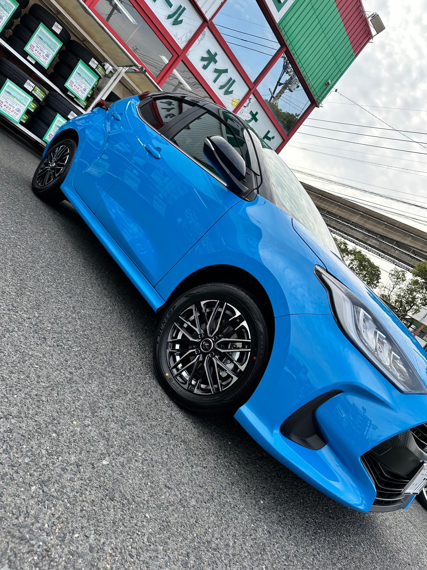 今回は新車装着のタイヤは流用してホイールのみの組み替えです!15インチですがしっかりと存在感がありますね(*^^*)