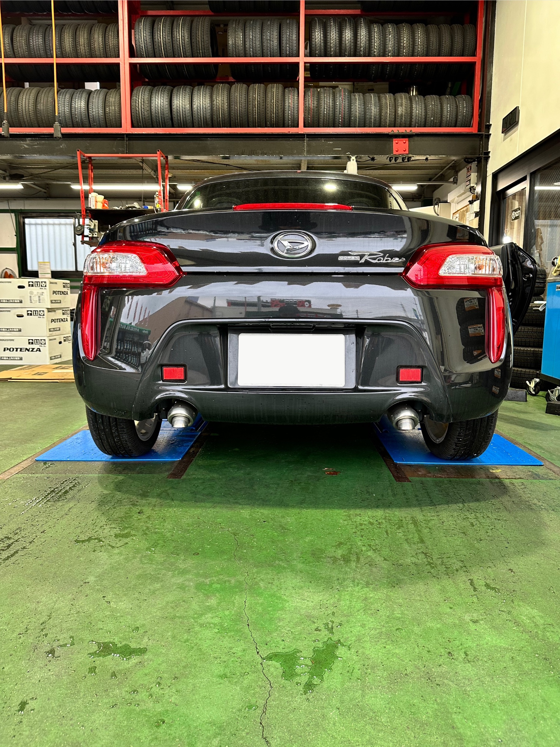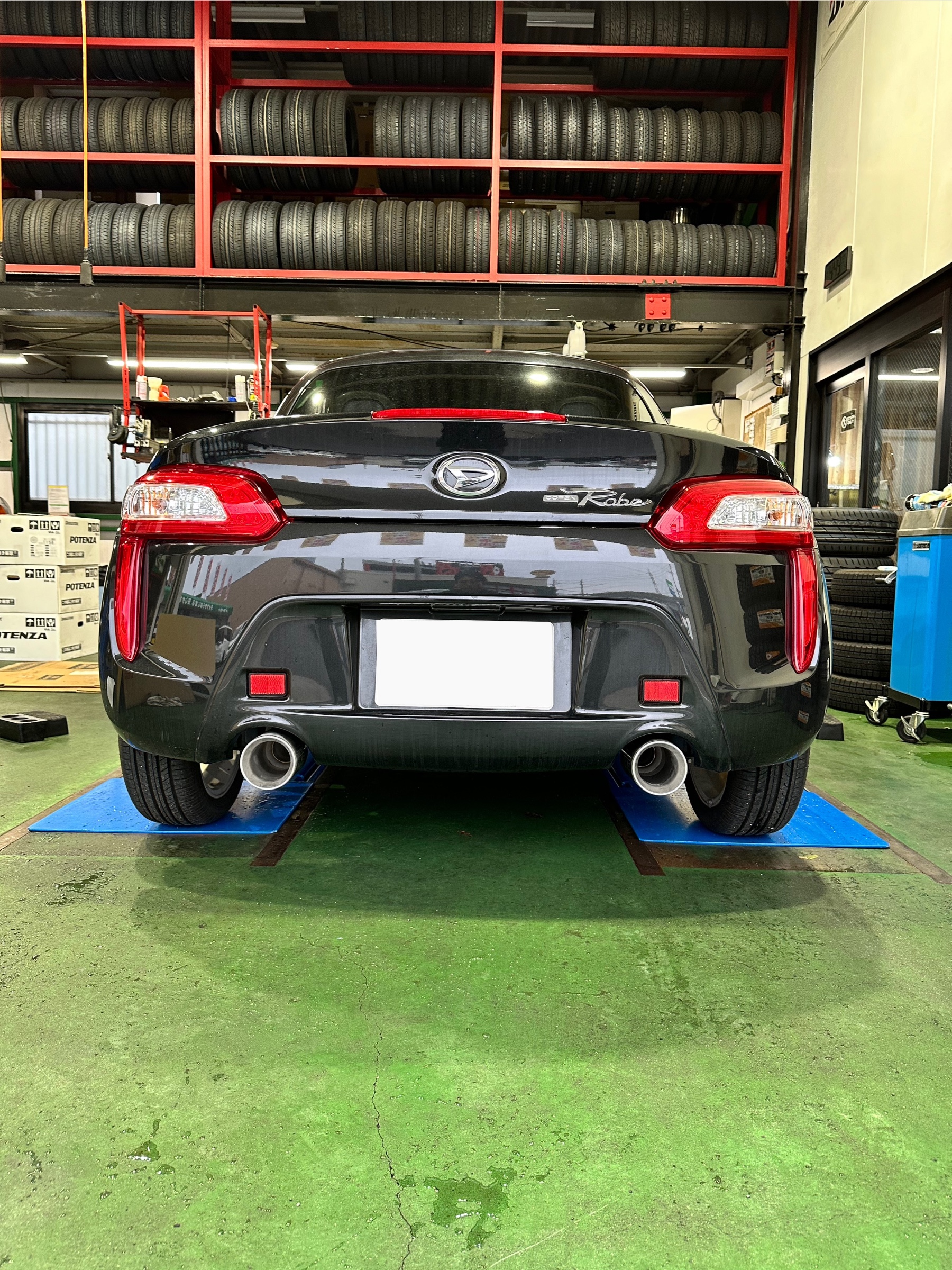 なんと本日お取り付けさせていただいたマフラーはコペンとHKSのコラボ商品です!ん、そんな商品って売ってるんですか?って思いましたよね?笑