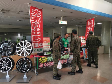 タイヤ展示会! ポスト 2015年10月22日 2ヶ月に一度小倉駐屯地の陸上自衛隊さんでタイヤの展示会を小倉南店と小倉北店合同でさせてもらっています!隊員のみなさんいつもありがとうございます(≧∇≦)企業様で展示会希望の方は是非声をかけください(^ ^) 担当:井上