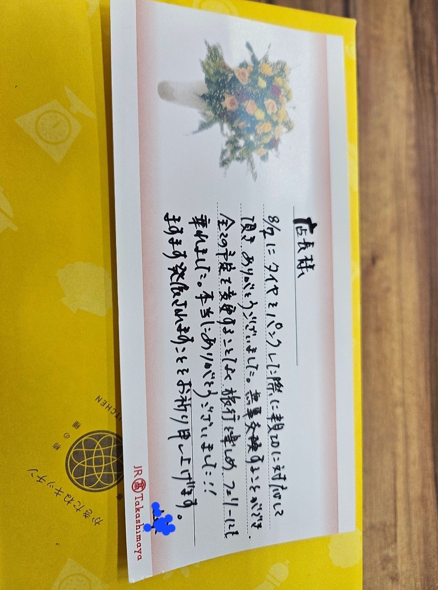 実質、僕は何も出来てないんですが、電話対応だけでこのようなお礼をしていただいて、ほんとうに嬉しかったです