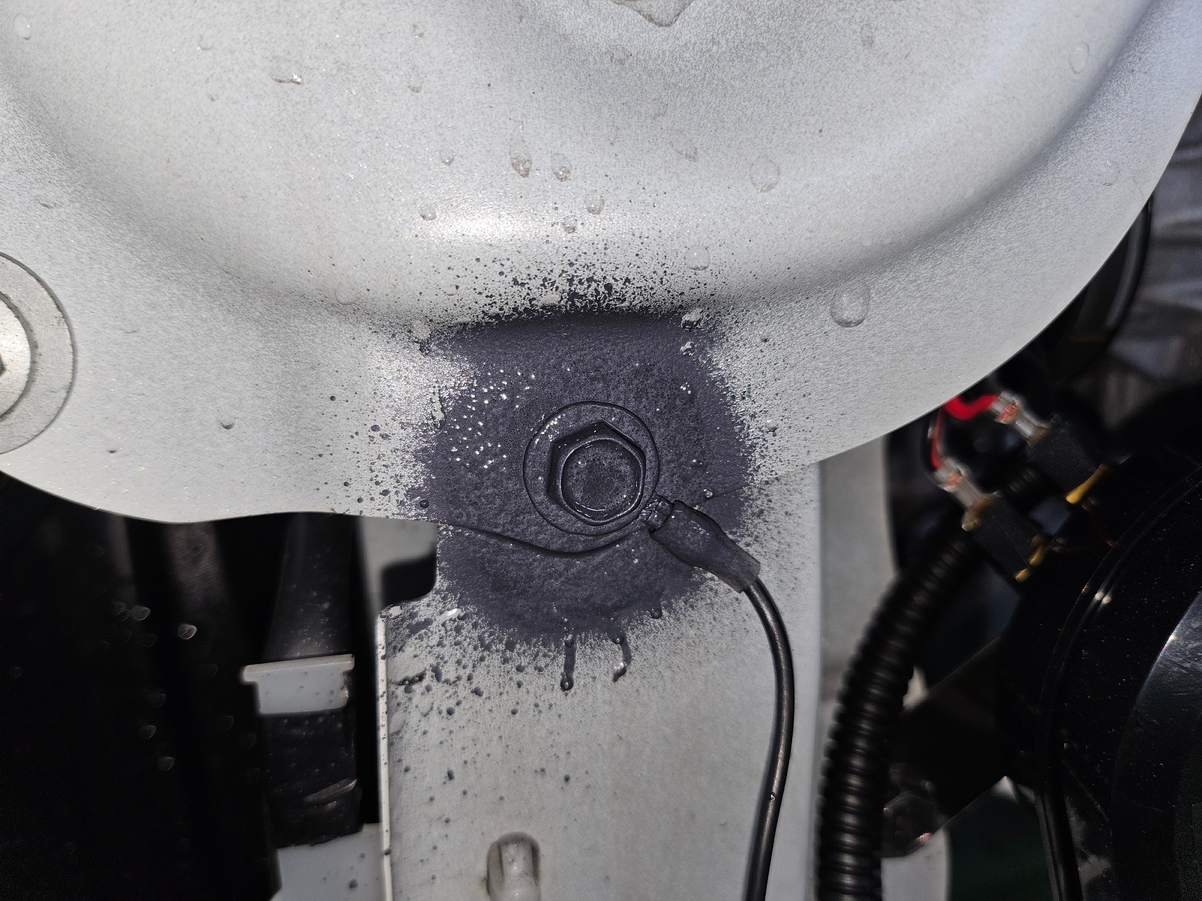 マイナス電源のボディアースもしっかり塗装を削ってから行いますが、