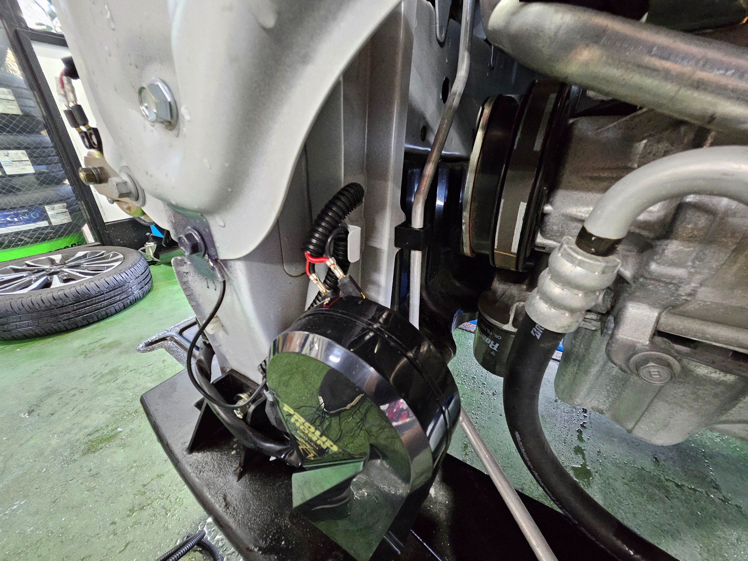 フロントバンパーの裏に取り付けますので