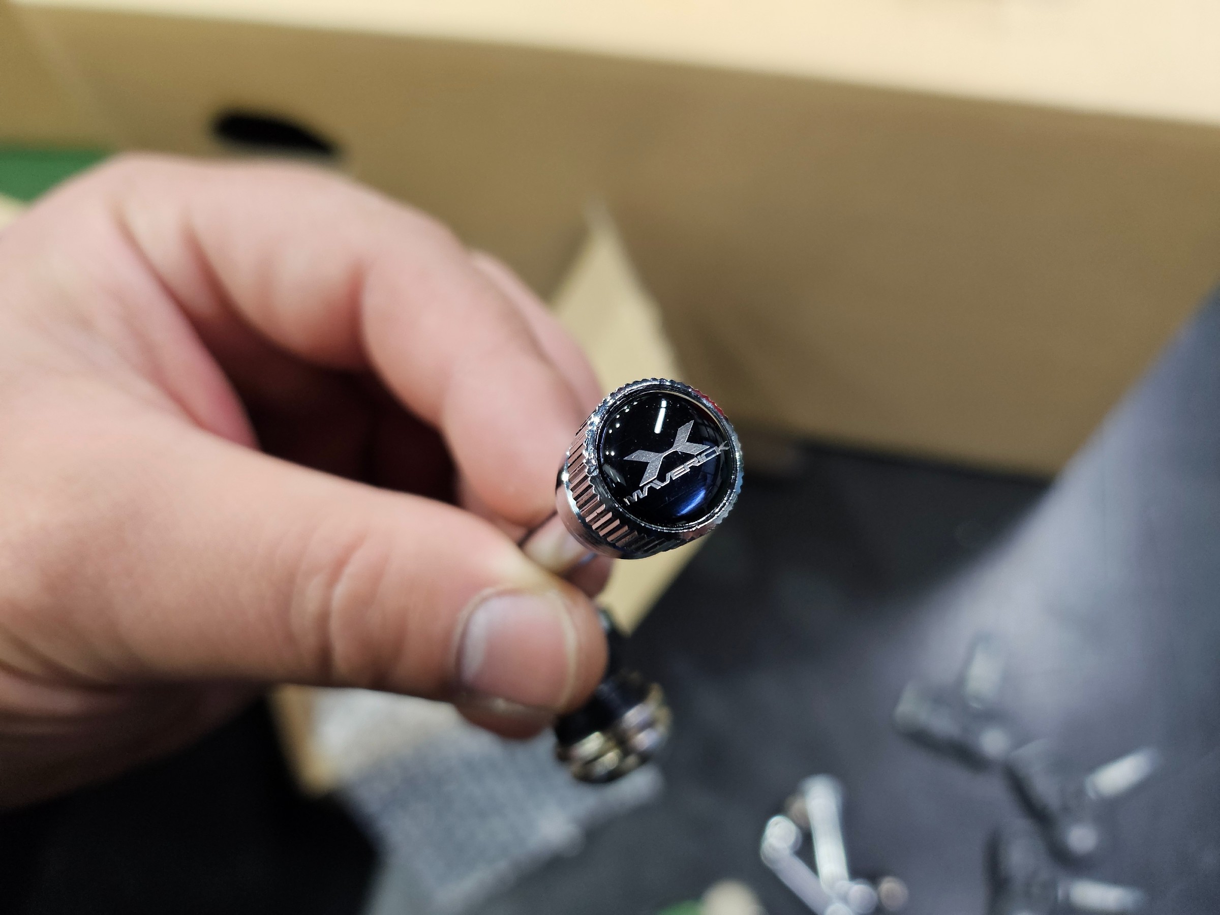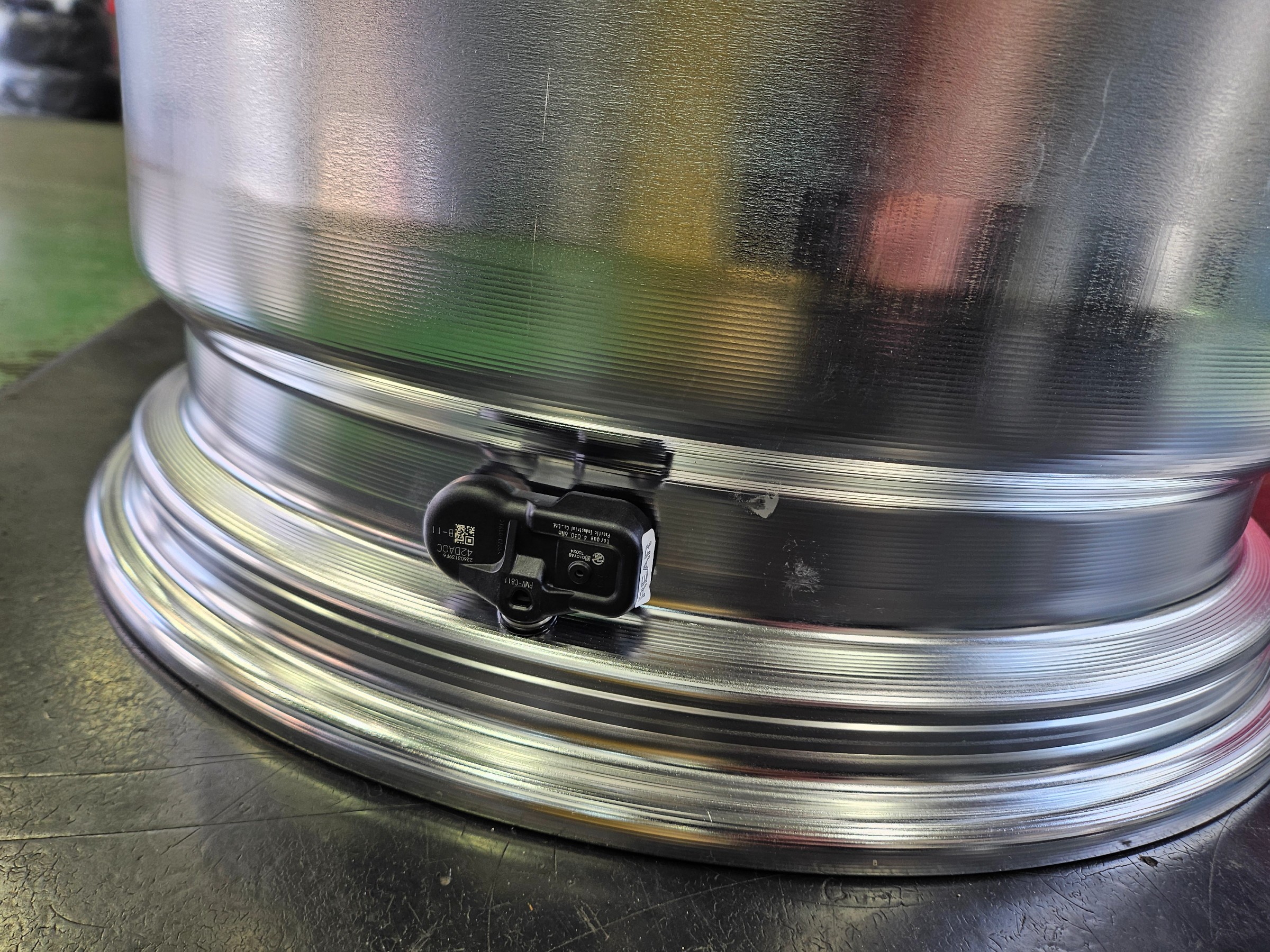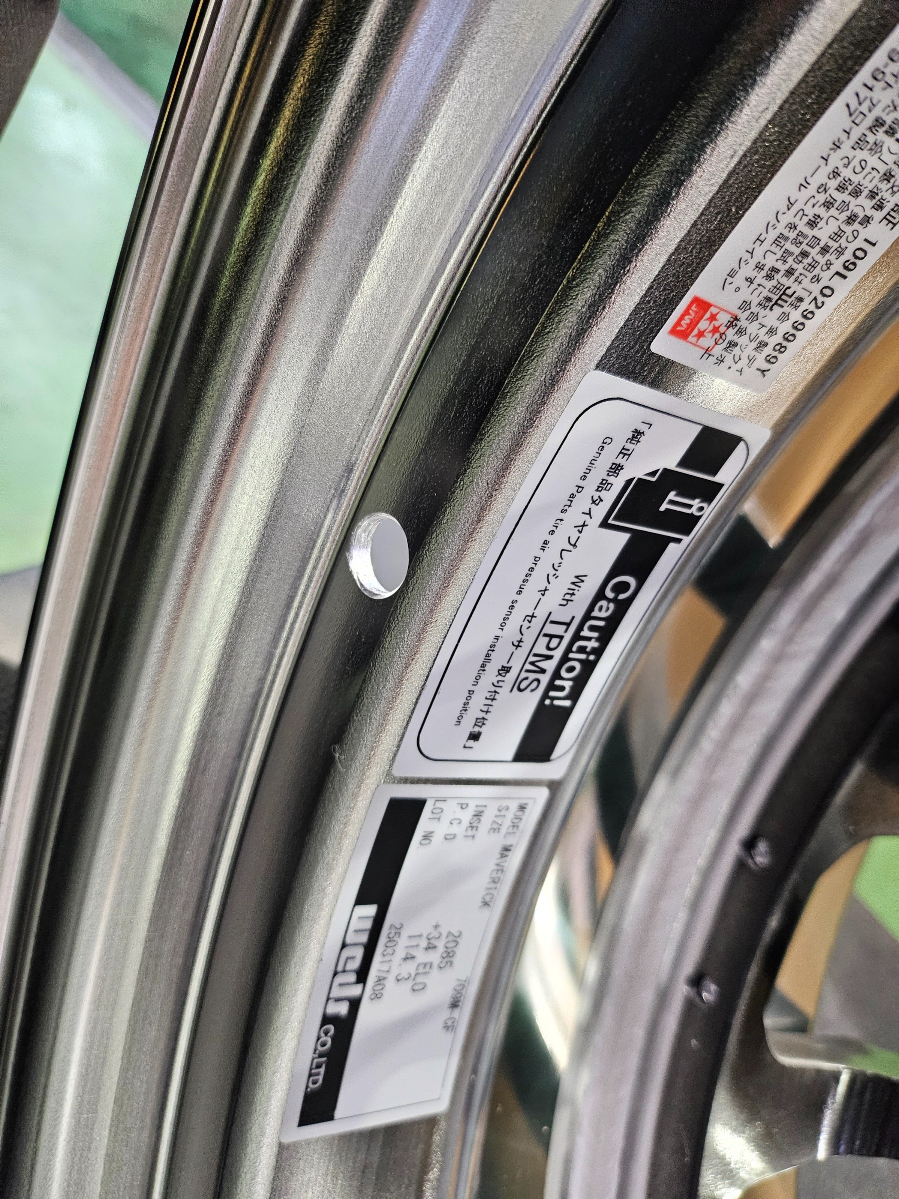 これを目立たないホイールの裏に専用の穴を開けてもらってます(この加工料は無料なんです)