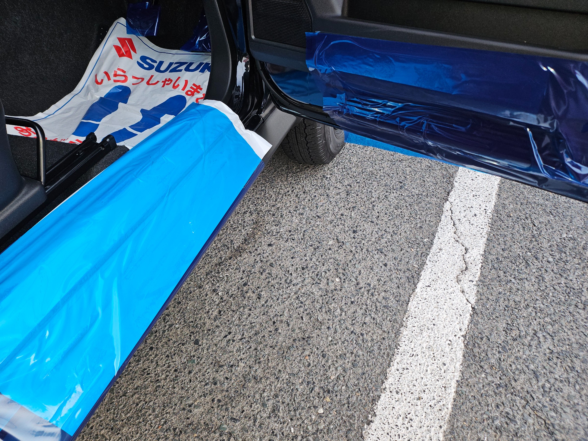 まぁ新車とか関係ないのですがどんな車にも傷は許されませんので触れそうな場所へ傷、汚れ、指紋も残したくないのでしっかり保護しました
