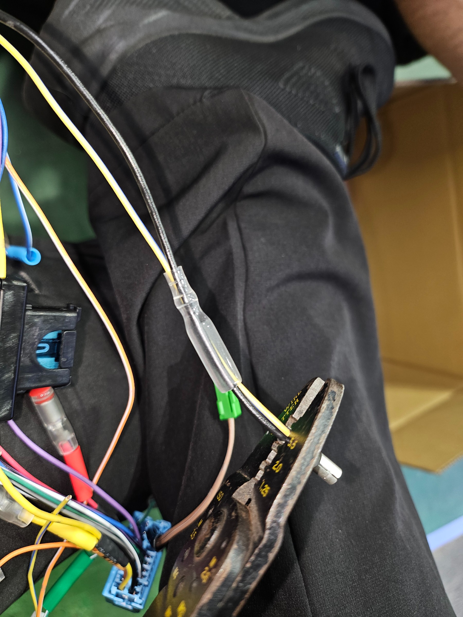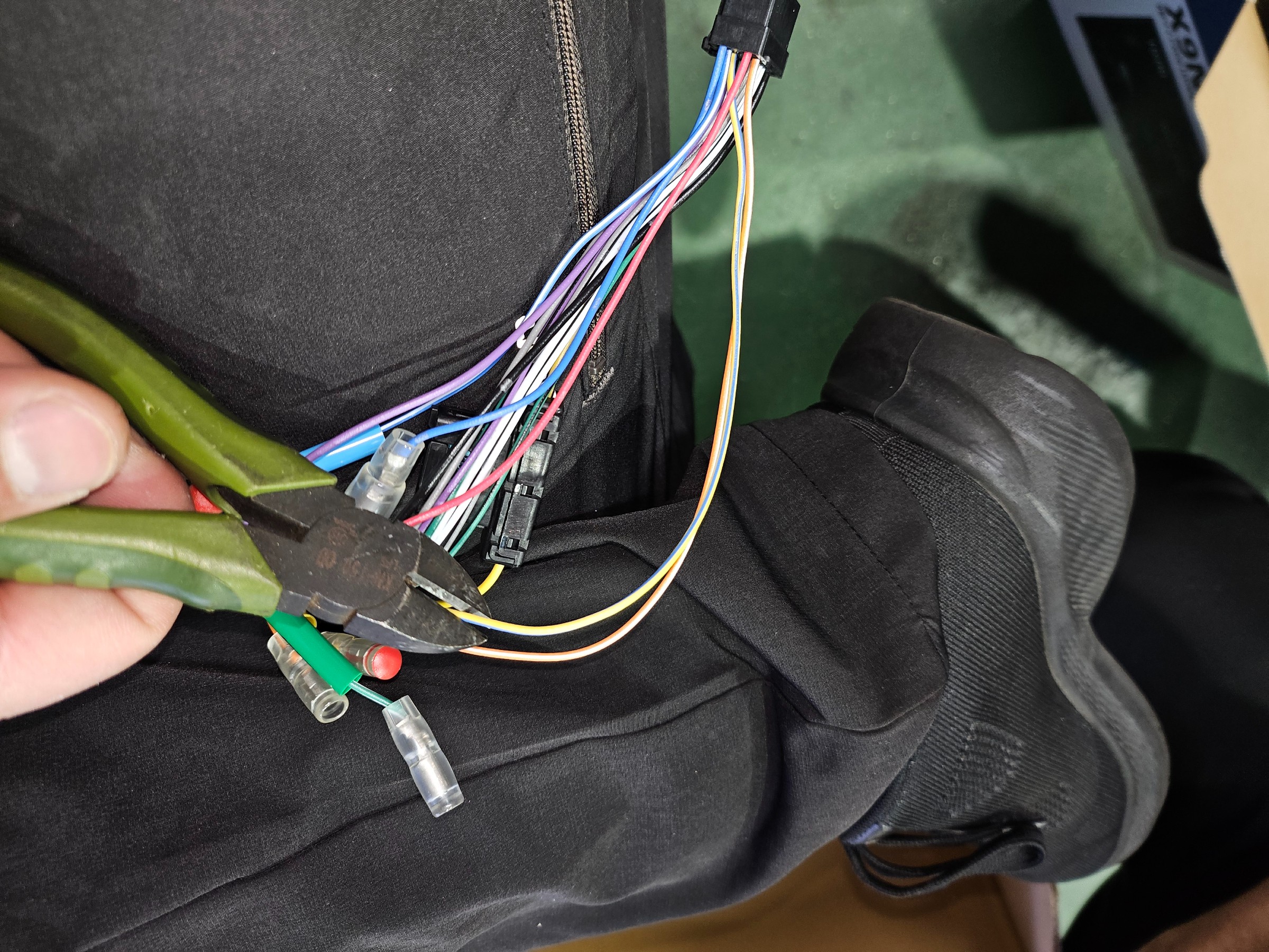 配線が短いですからねぇ、ナビの収まる狭い部屋の中で加工を行います