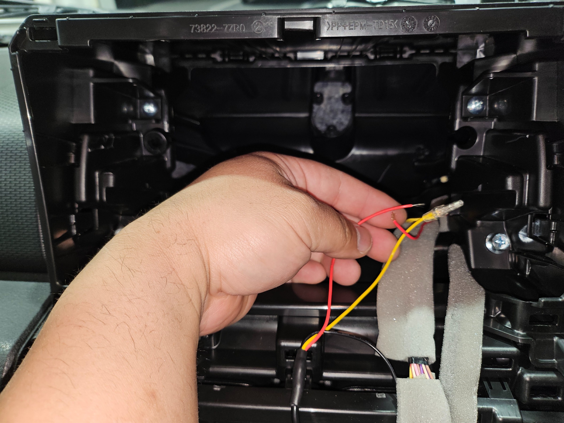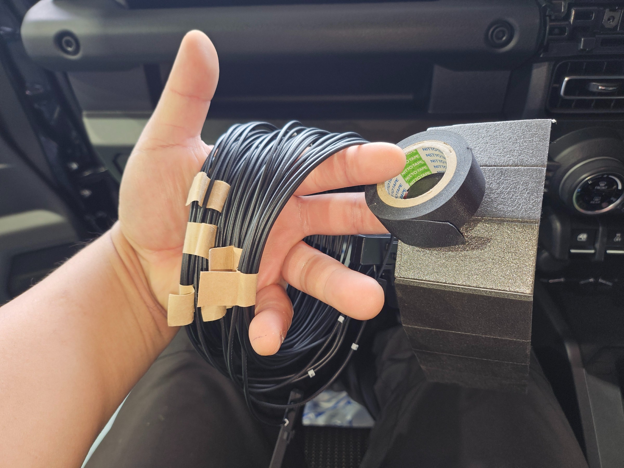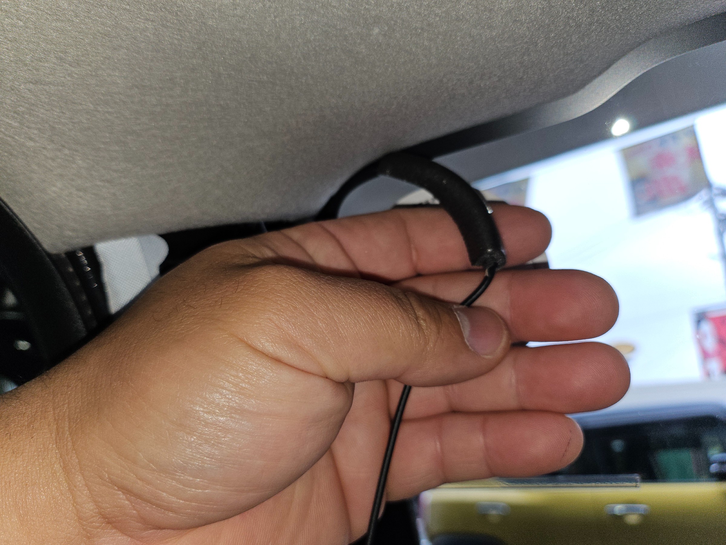 アンテナ配線も指の所以外は見えないように純正配線と共にまとめていきます