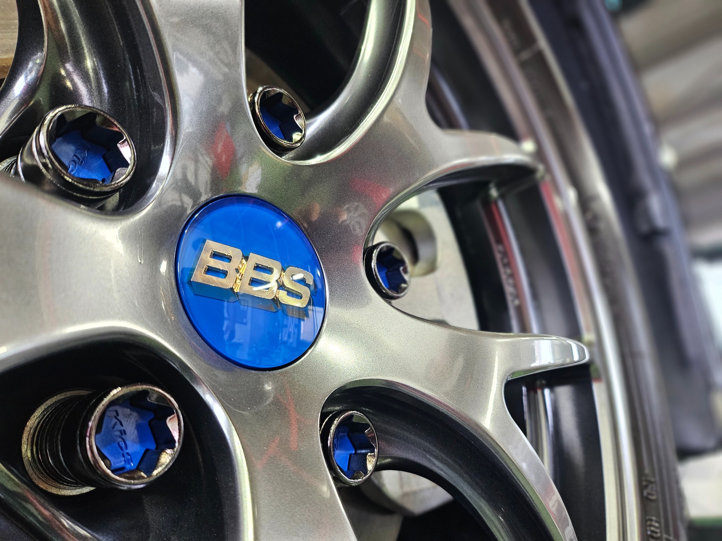ブルーのセンターキャップとナットのキャップの色を合わせた仕様にしております