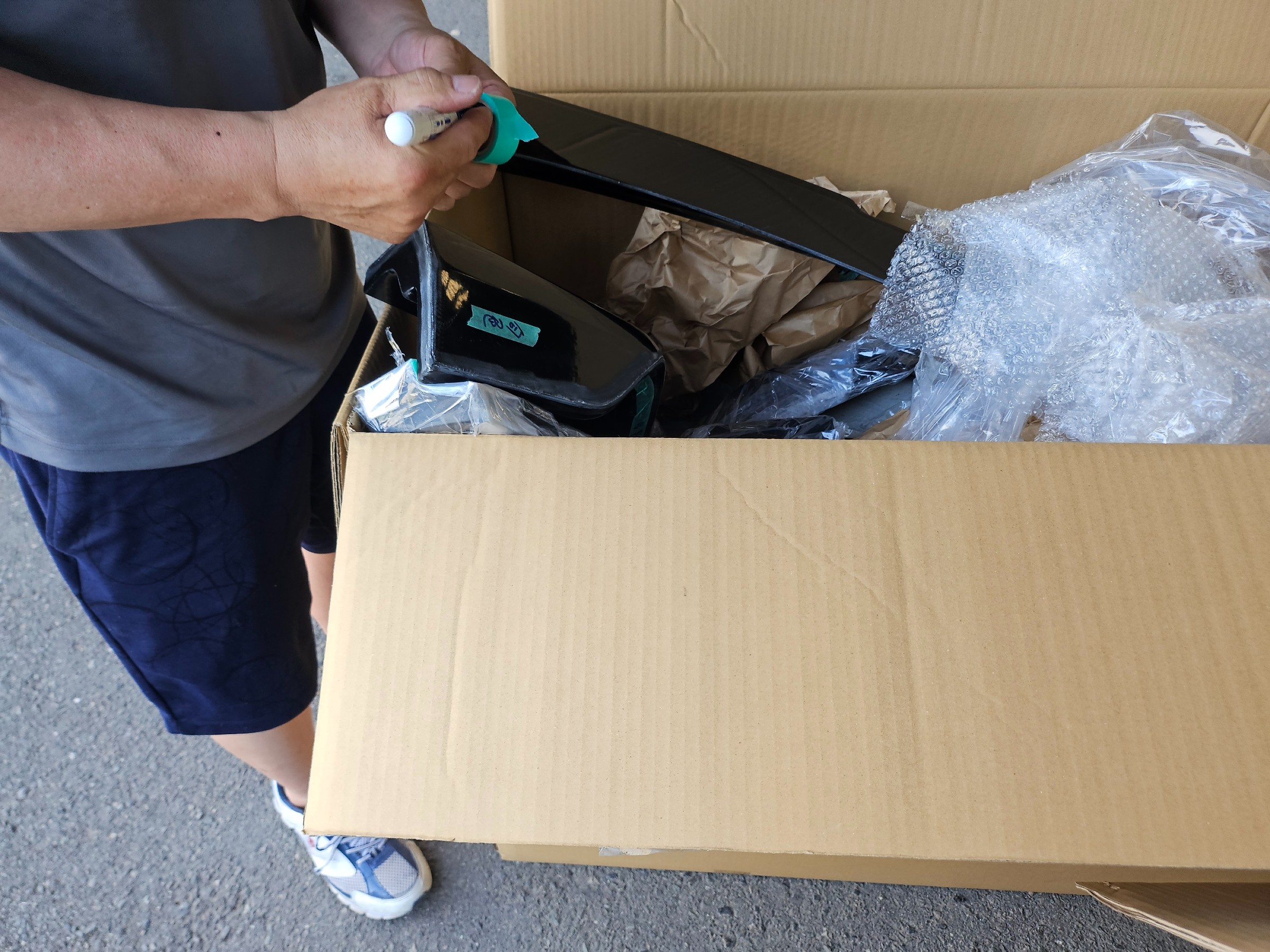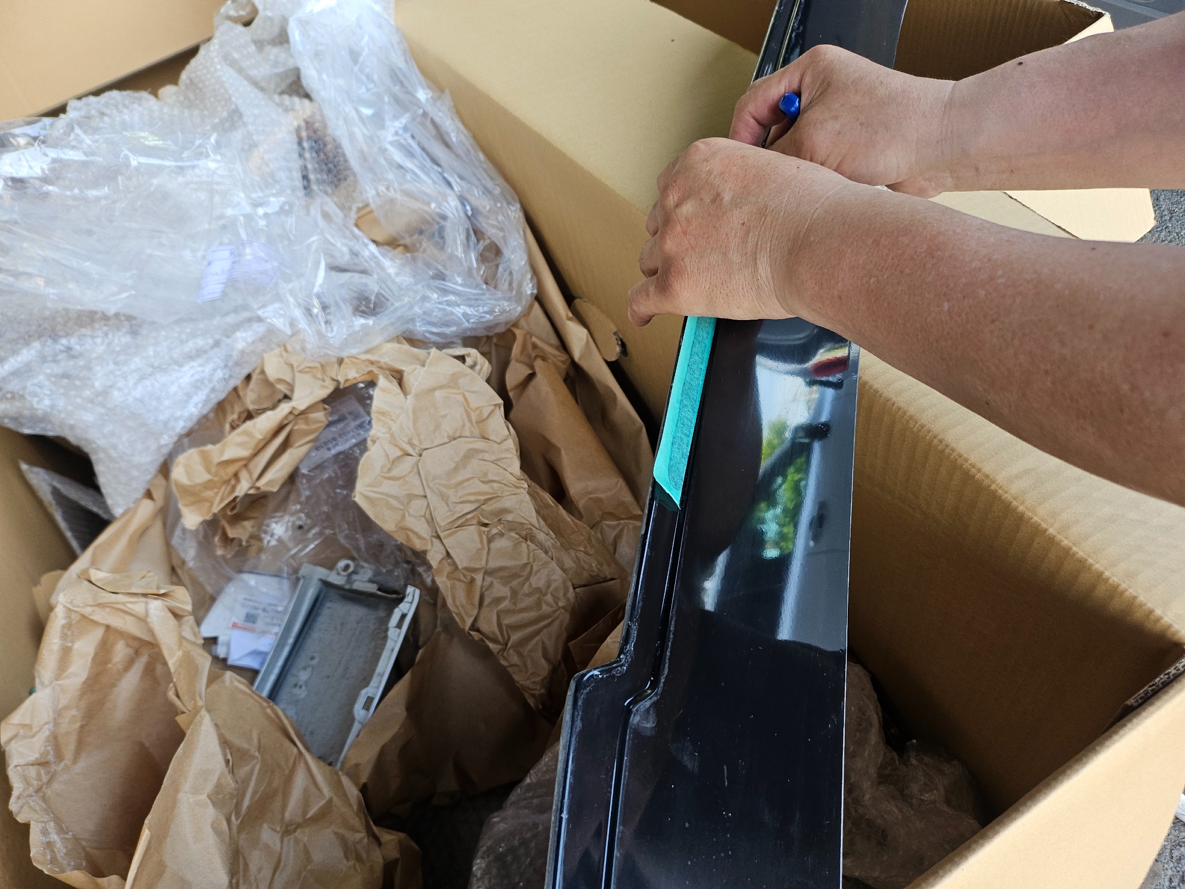 ハーフエアロ一式とリアウィングを取り付けます