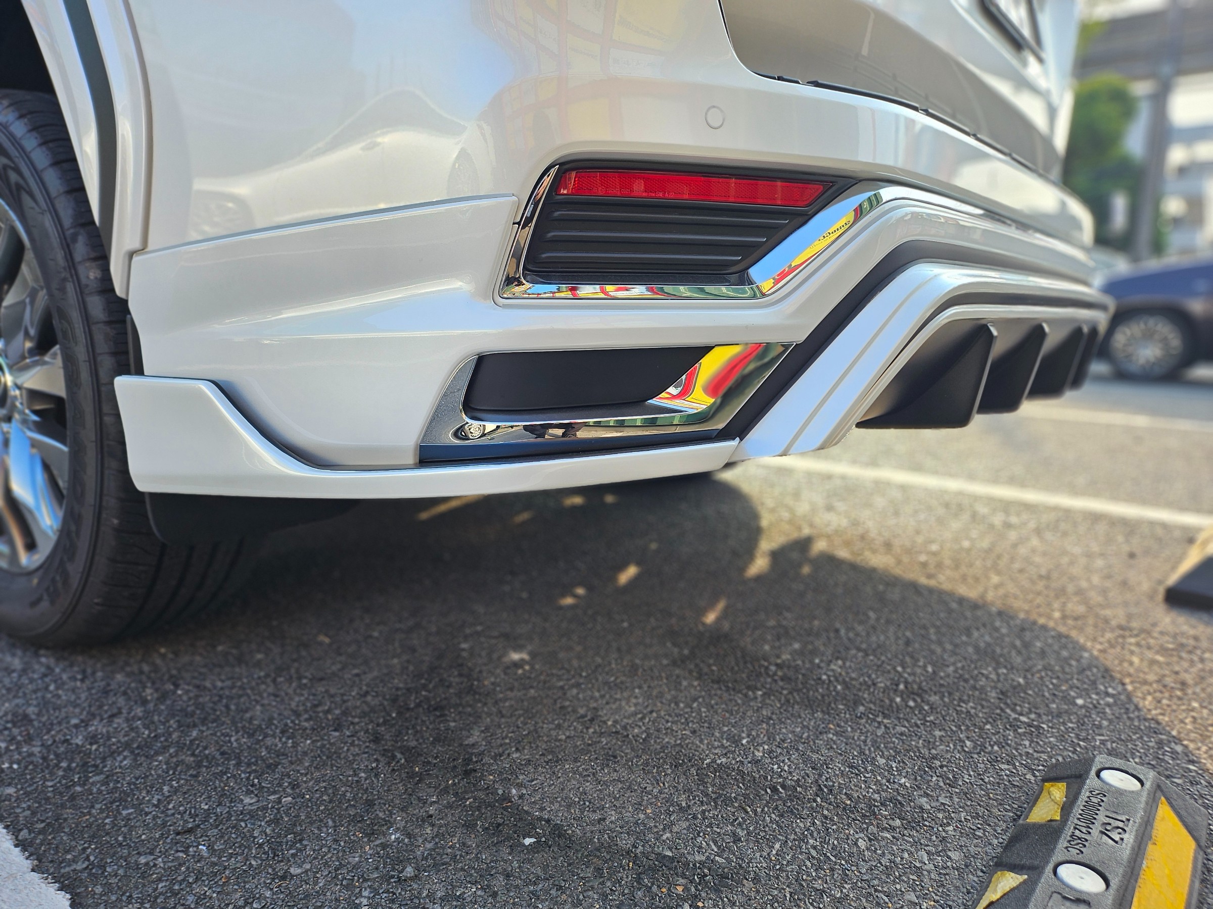 リアはサイドディフューザーと中央へいかついエアロが取りついてます