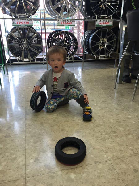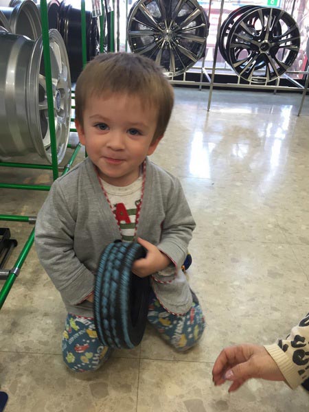 かわいいお客様♡ ポスト 2015年4月3日 かわいいお客様のご来店です!Sくん2歳 ハーフの超かわいい男の子です(*^^*)作業を待っている間、終始『タイヤ、タイヤ』と連呼していました(笑)かなりタイヤが好きみたいです>_<将来はタイヤ屋さんかな?(笑)また、遊びに来てね〜V(^_^)V 担当:井上