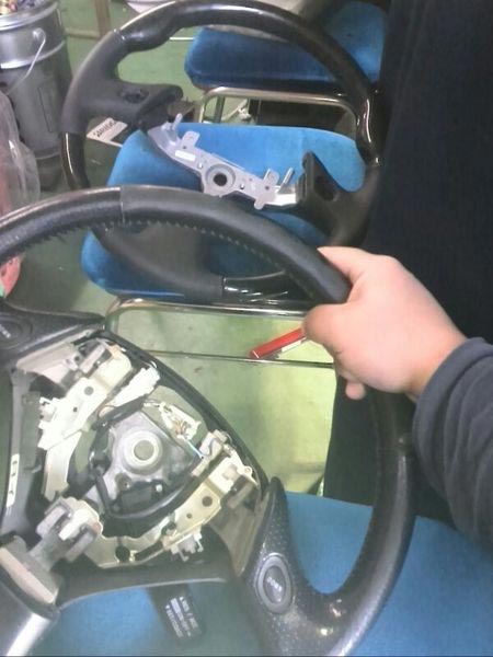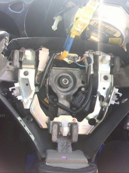 エアバック、ホーン、シーケンシャル、リフトUPなどの色々なパーツがハンドル自体に組み込まれてしまってるのでなかなかスムーズとは行きません(このタイプの移植は初めてやります(泣))