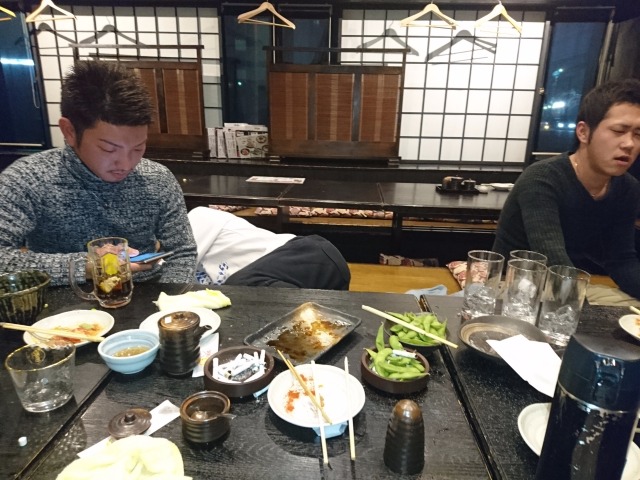 忘年会 ポスト 2017年1月4日 さぁ去年の末も忘年会をやりましたいやぁグダグダです(笑)忘年会は博多一番鳥さんにお邪魔しましたたべのみ放題で価格もお安い‼もー寝ちゃってる奴も、、、、初詣は真理教へなんですが移動もグダグダ毎年毎年懲りてません忘れたい事が沢山あったのかな(笑) 担当:齊藤