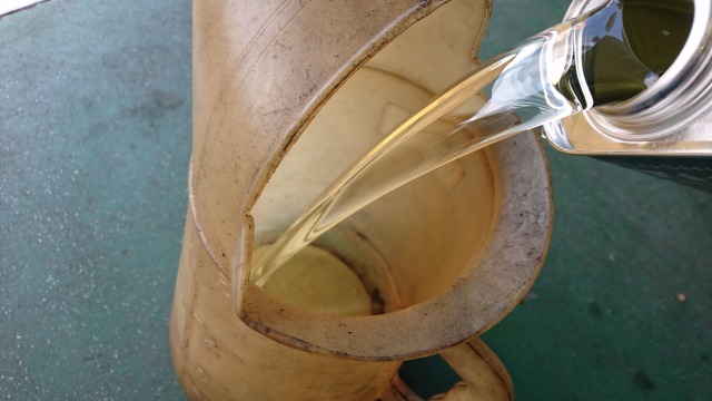最初はこんなに透明なフラッシングオイルも