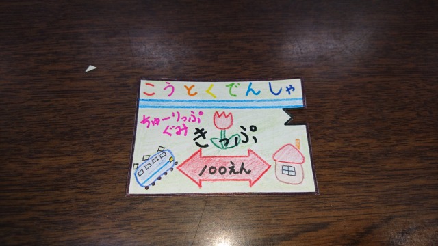 子供切符 ポスト 2017年2月8日 事務の内山さんの娘さんに頼まれ幼稚園のお遊戯で使う子供用の切符をつくりました2歳位の子供用なので結構悩みますね~大きさとか色合いとかやっぱカラフルが一番かなと出来上がりですこれをあとはラミネートしました我ながら完璧ですなうちの子供にもあげようかな(^ω^) 担当:齊藤