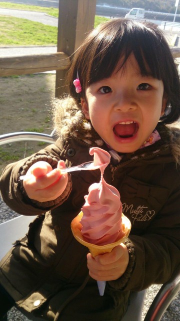 イチゴもソフトクリームも大好きな娘ちゃんは、大興奮で嬉しそうに食べていました(^-^)
