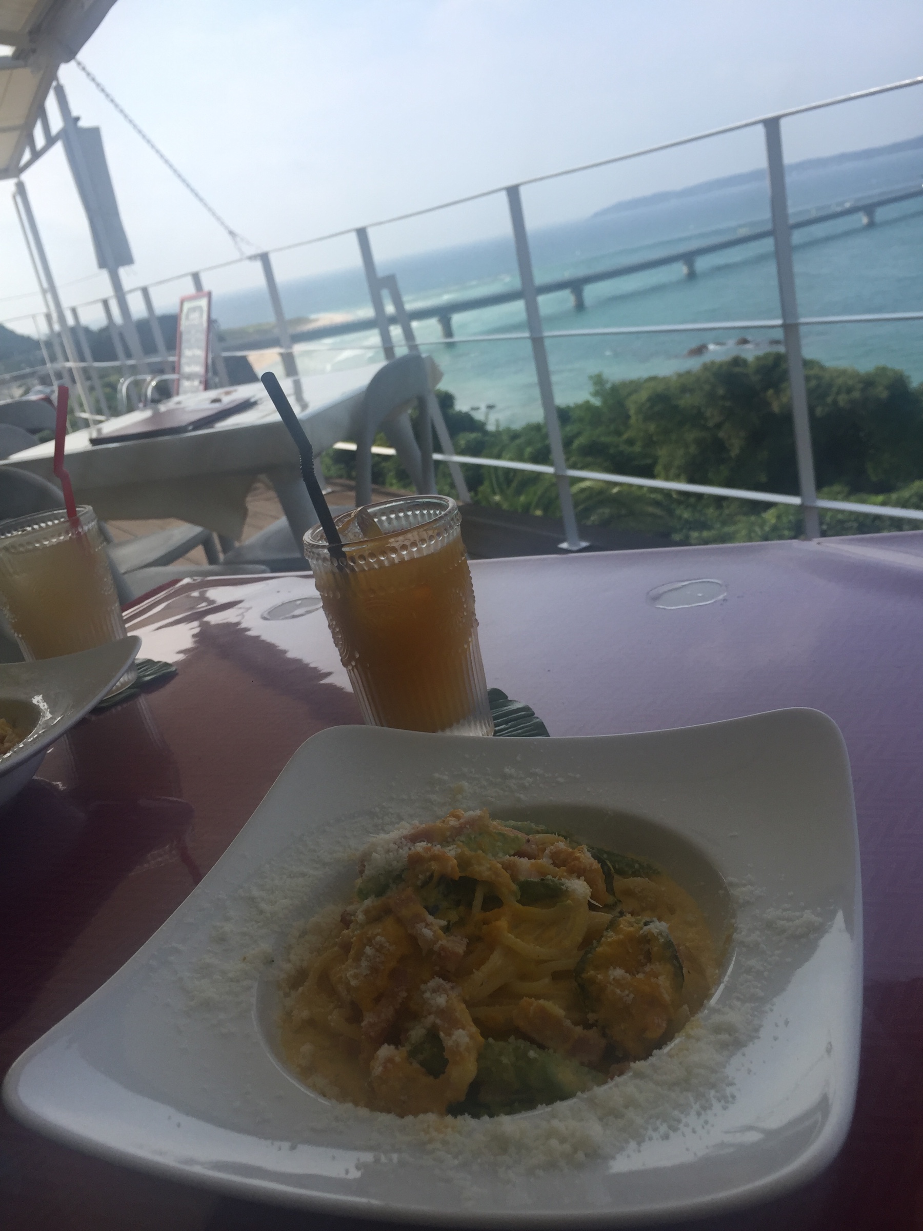角島☆ ポスト 2017年10月10日 角島にはよく行くんですが ステキなカフェがあるのを発見したので行ってきました! 角島大橋と角島が見える絶景のお店♡♡♡ ハロウィンが近いので限定のパンプキンパスタを食べました。濃厚で美味しい(՞ټ՞ 季節はずれの海も最高!やっぱり海は癒されます\❤︎/ 担当:内山