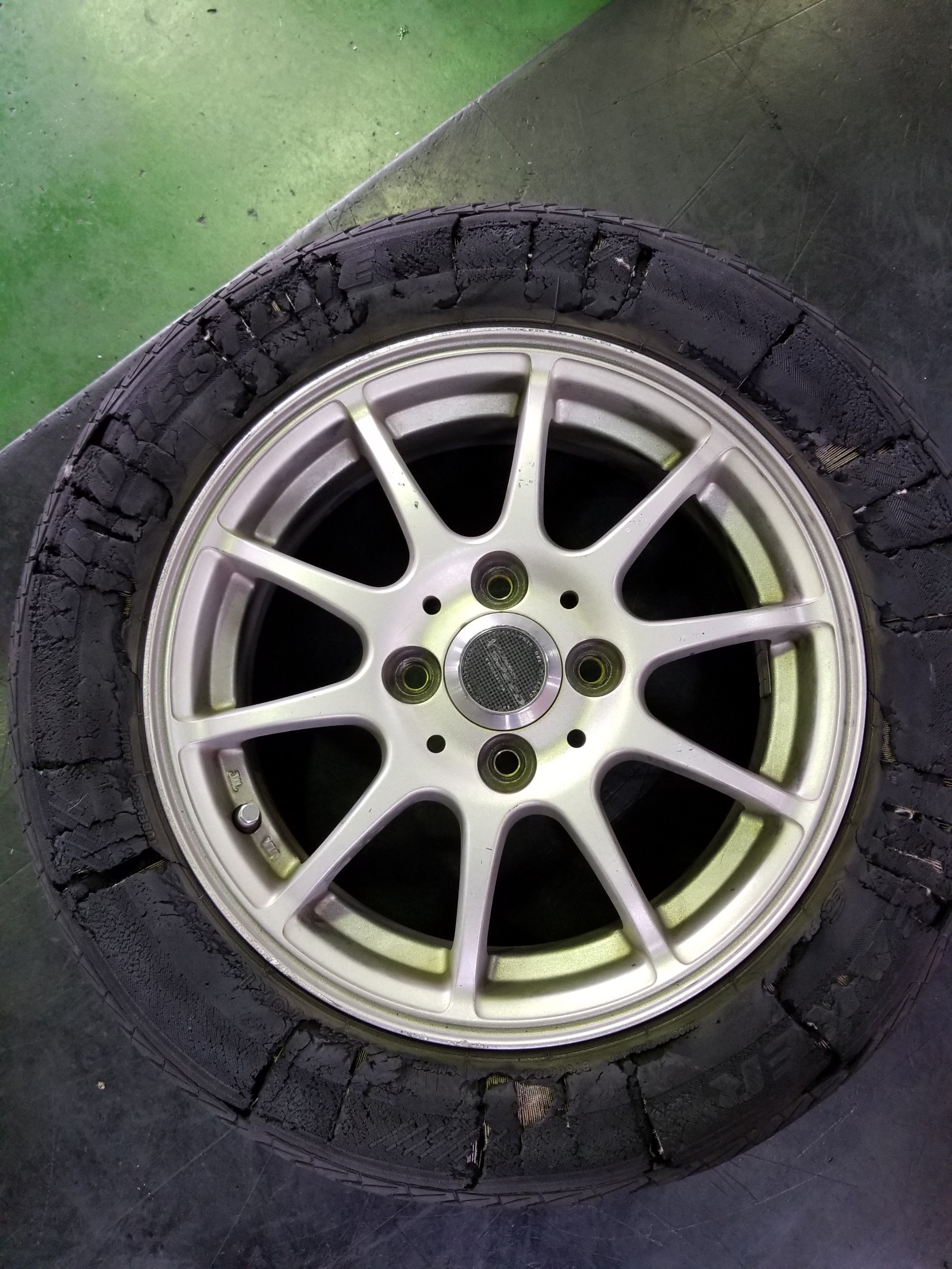 バースト注意! ポスト 2017年11月4日 あららららら~(>_<) 完全にバーストしてますね(^_^;) 空気圧が極端に低い状態で走行すると、 タイヤのゴム同士が擦れて異常に熱をもち このように破裂(バースト)してしまいます! バーストはタイヤがダメになるだけでなく、ホイールを傷つけてしまったり、事故にもつながりかねません! 月に一度は必ず空気圧点検をしましょう(^_^) 担当:川口