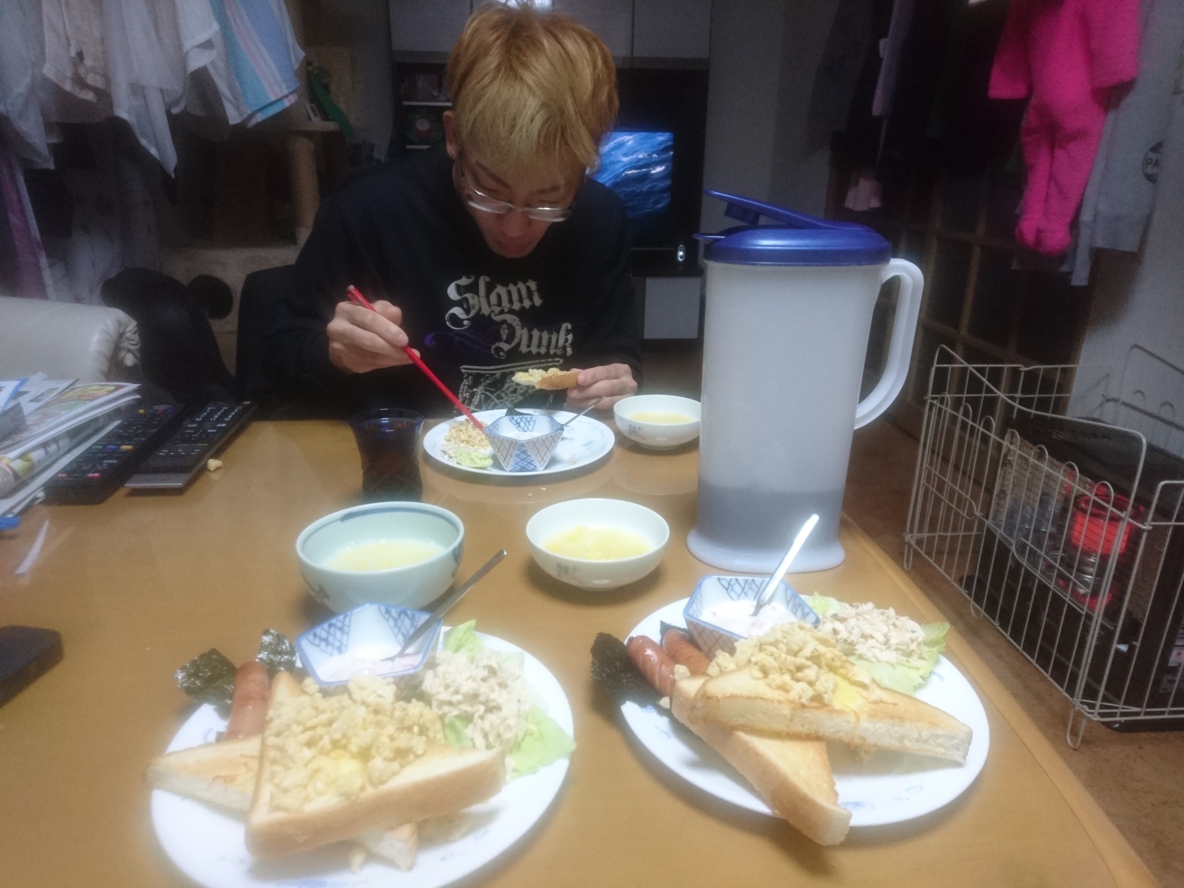 友人も朝食をいつも食べない人らしいけどがっついてくれました