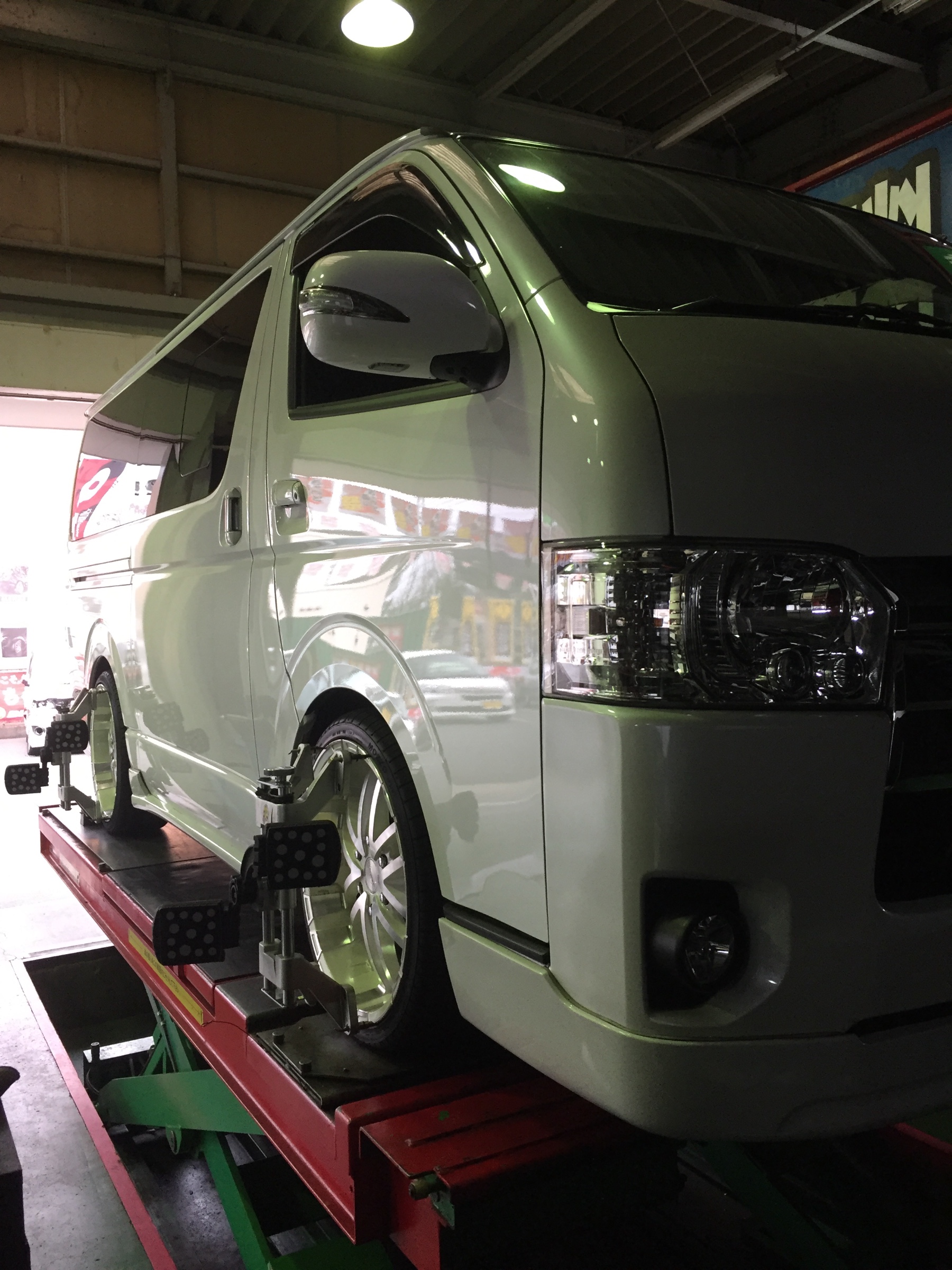 「タイヤが内べりする」ということで、ご依頼をうけました《ハイエース》