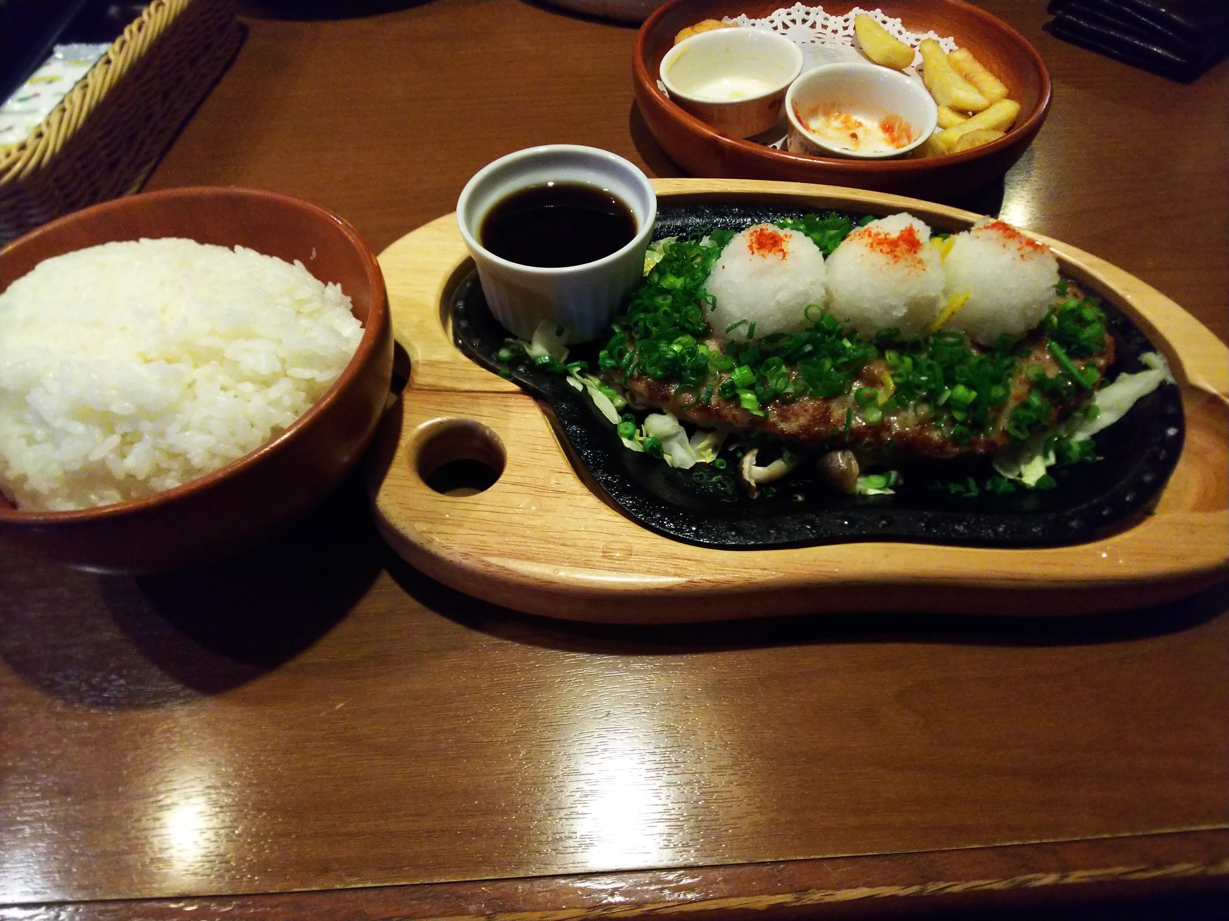 先日齊藤さんとびっくりドンキーに行きました。久しぶりだったのでなに食べようか迷うくらいメニューがありました(^^)僕が食べたのは下ろしハンバーグです。