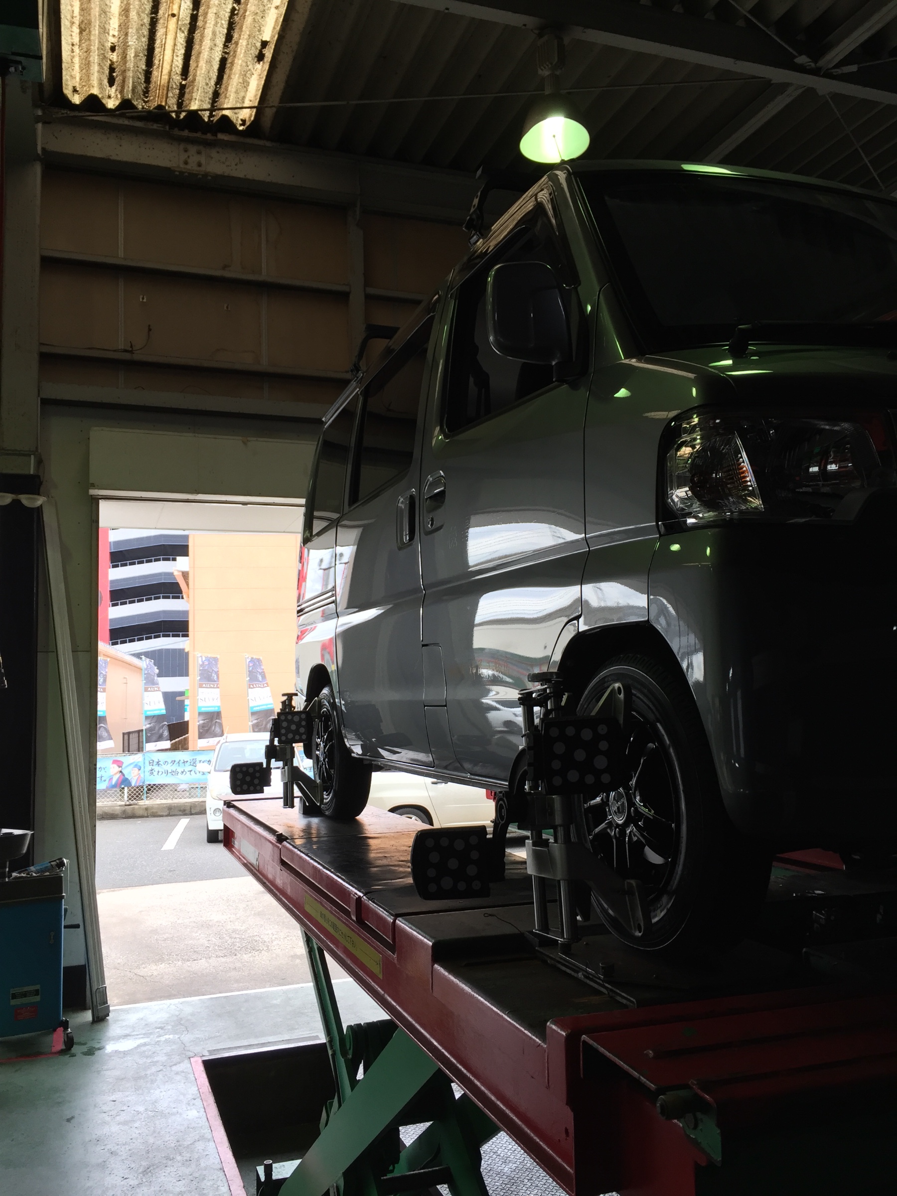 軽バン特有のふらつきで、運転がしにくいとのご相談でしたので、今回はダウンサスも一緒に取り付けです(*゚▽゚)ノ