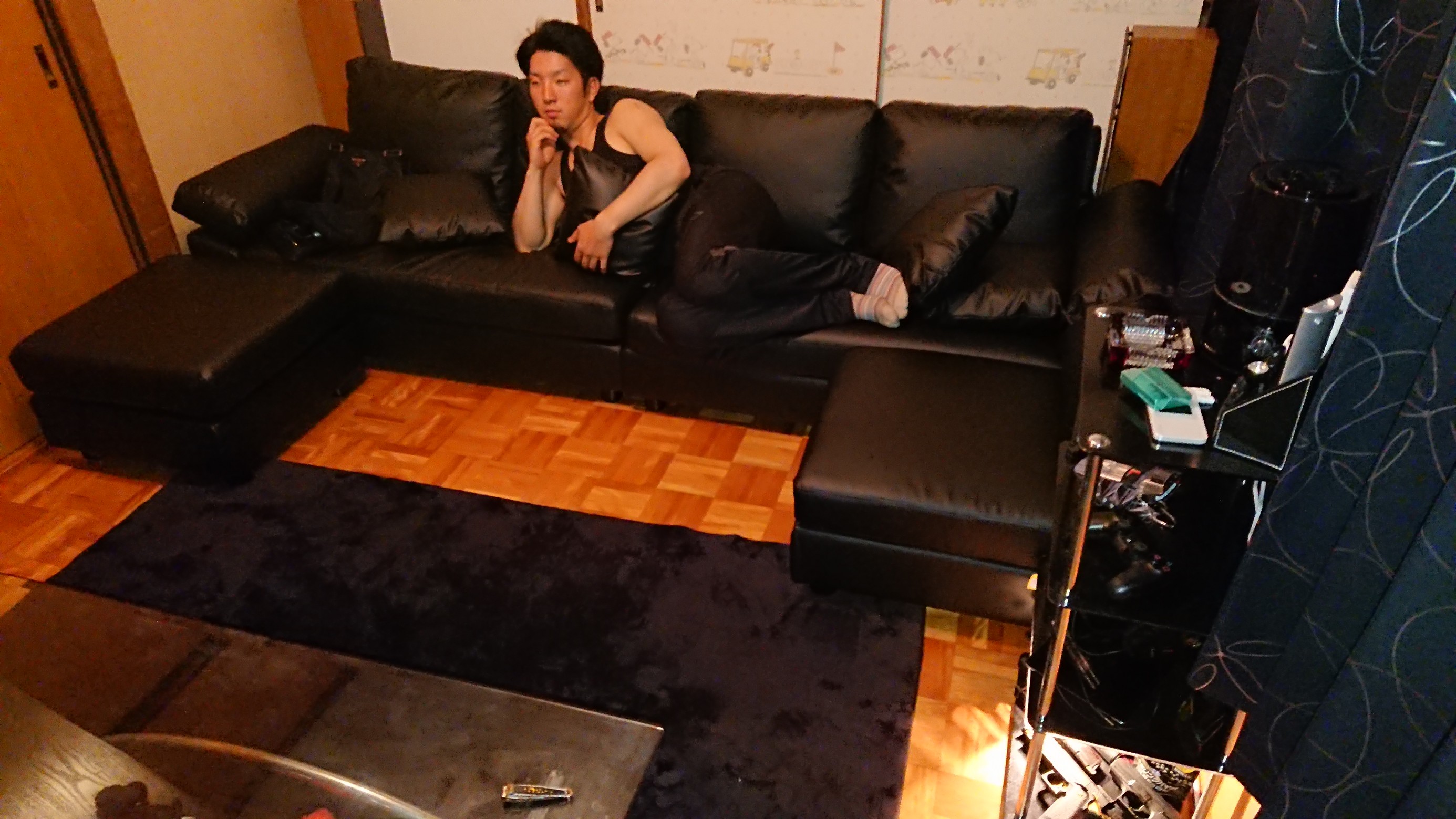届いた ポスト 2018年7月14日 念願のソファー 6人掛けです 友人の日笠くんがモデルですよー 雑誌のモデル風でと伝えると、、 はいキモいですね~ さておき部屋も大分完成に近くなりましたね 間接照明といい テレビ周りもw こちらも念願の60インチw あとは背面にあるフスマのスヌーピー柄をやっつけるだけです 担当:齊藤