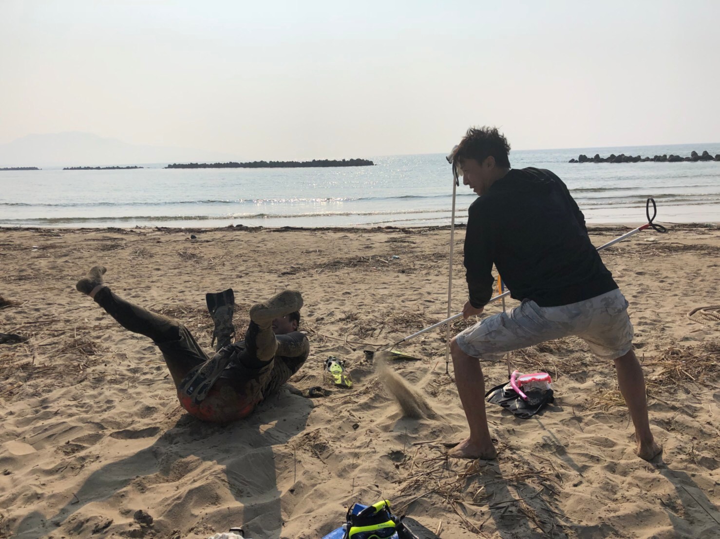 素潜り ポスト 2018年7月20日 こんにちは、武内です。 先日素潜りに行ってきました(〝⌒∇⌒〝) 僕は泳げない人なのですが頑張ってついていってました(。-∀-) ですが.、魚がいませんでした.、(ToT) 魚をモリで突いてとったどーって言いたかった.、って言う気持ちは来週に持ち越して.、 次頑張ります(^_^)v 担当:武内